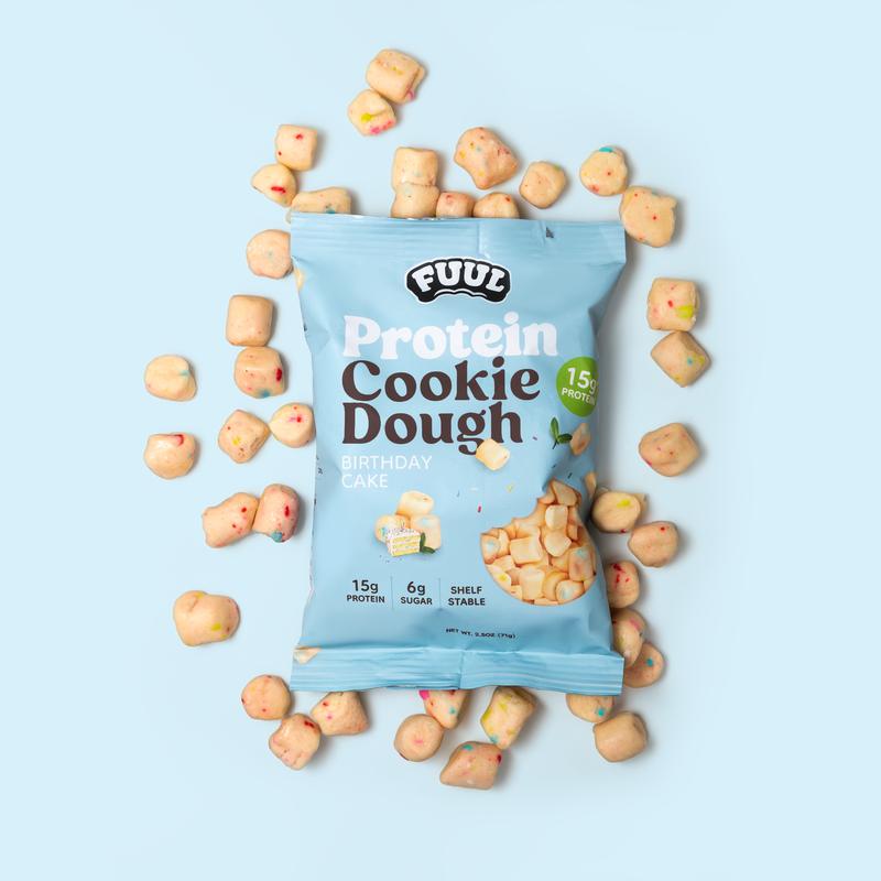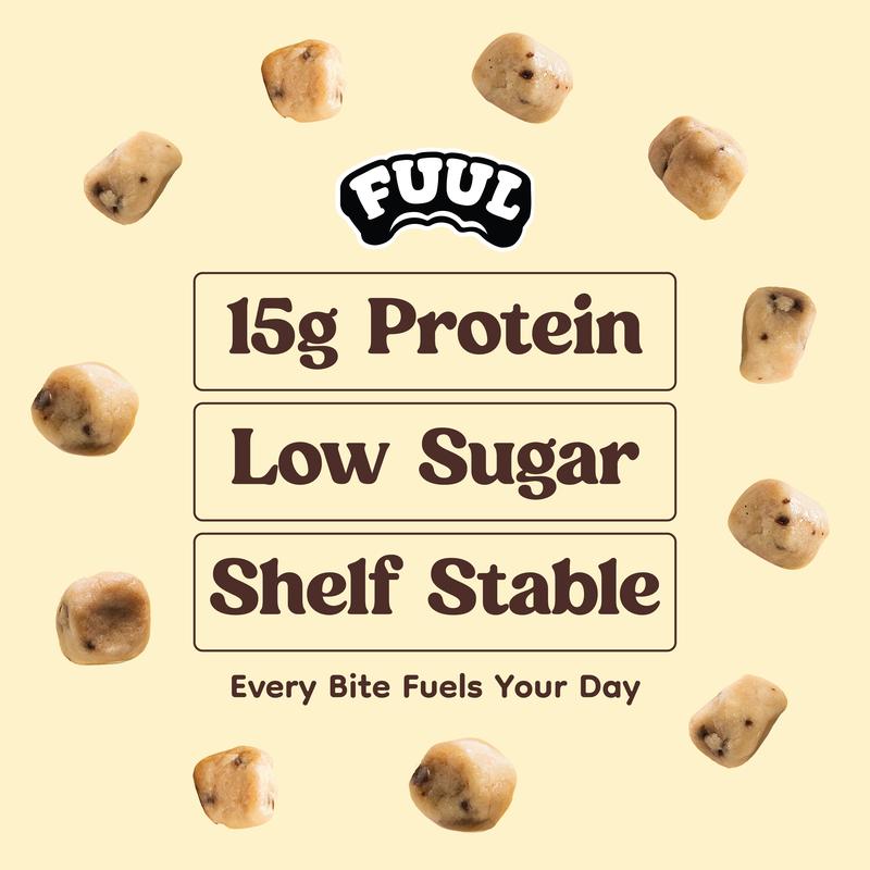 FUULâs Protein Cookie Dough Bites are back, lighter, fluffier, and closer to real cookie dough. Each 2.5 oz bag contains 15g of protein and only 6g of sugar. Perfect for snacking or post-workout recovery.