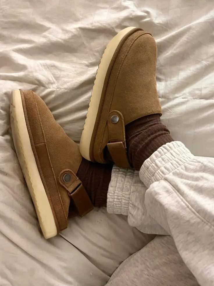 False advert! Slicing my ankle up the moment I tried it on. Tiktok shop sellers are going to say its comfy but the sole is so hard and chunky! Don't waste your money and spend a bit more on an UGG goldenstar clog for better quality! This ain't it!