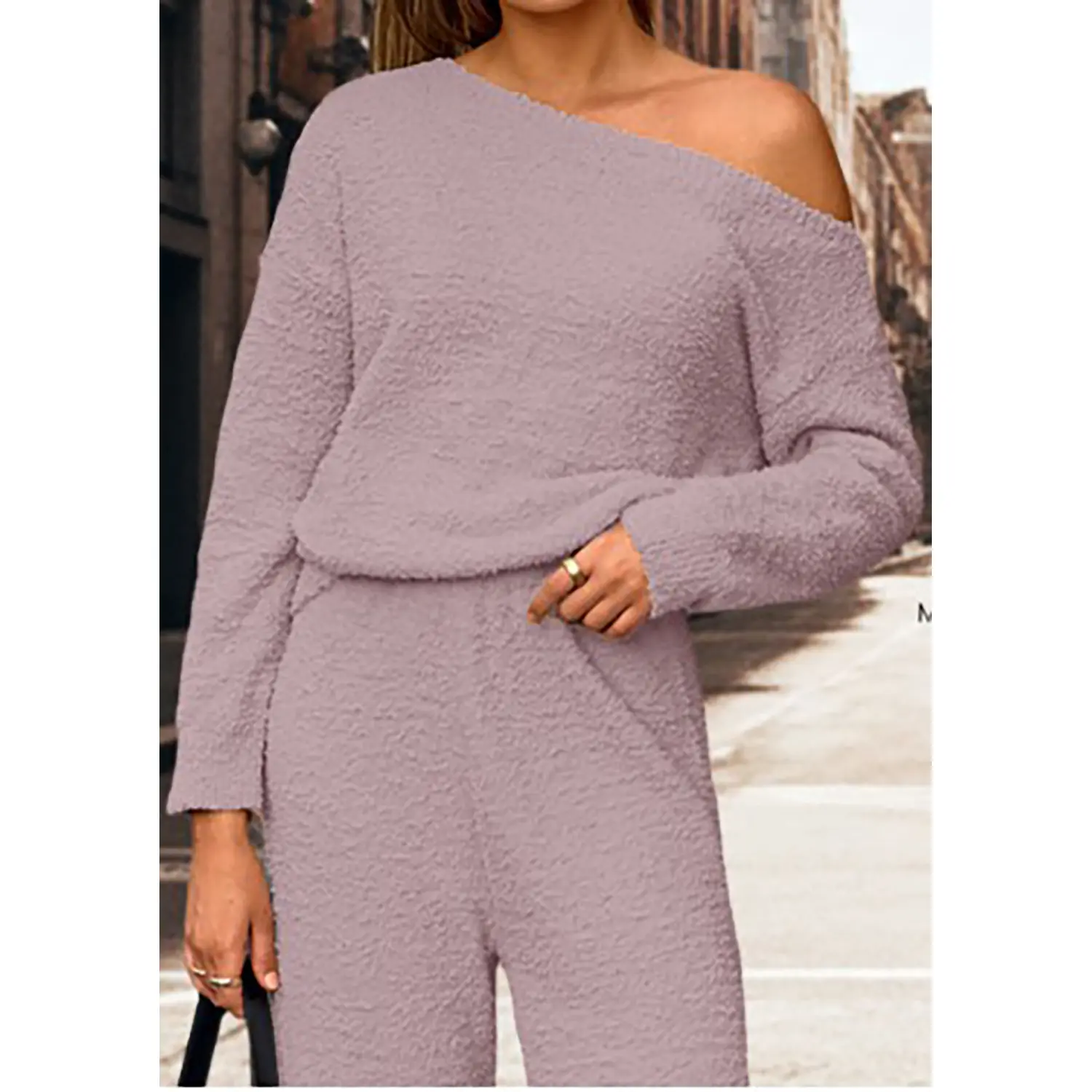 Β·Match: The soft fuzzy fleece fabric of this pajama set envelops you in coziness. The one-shoulder design adds a modern flair, while wide-leg pants ensure a relaxed fit. Ideal for lounging by the fireplace, it effortlessly blends comfort with style