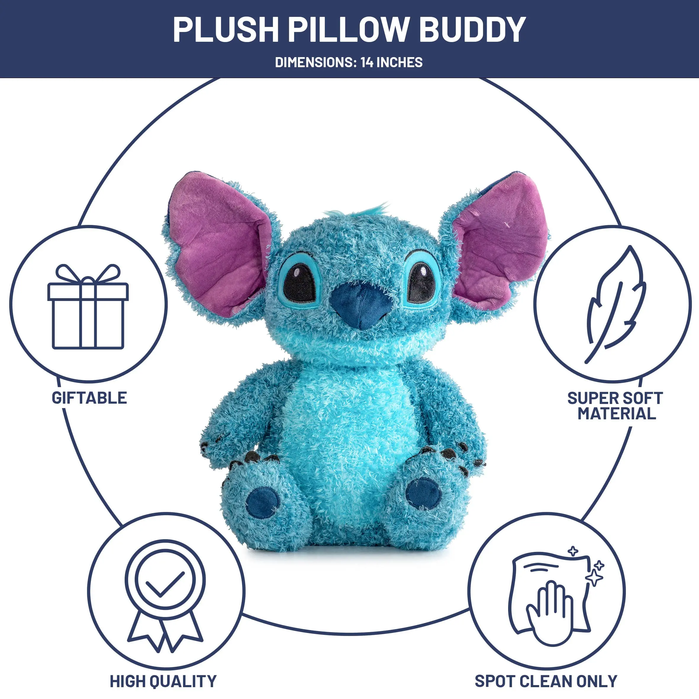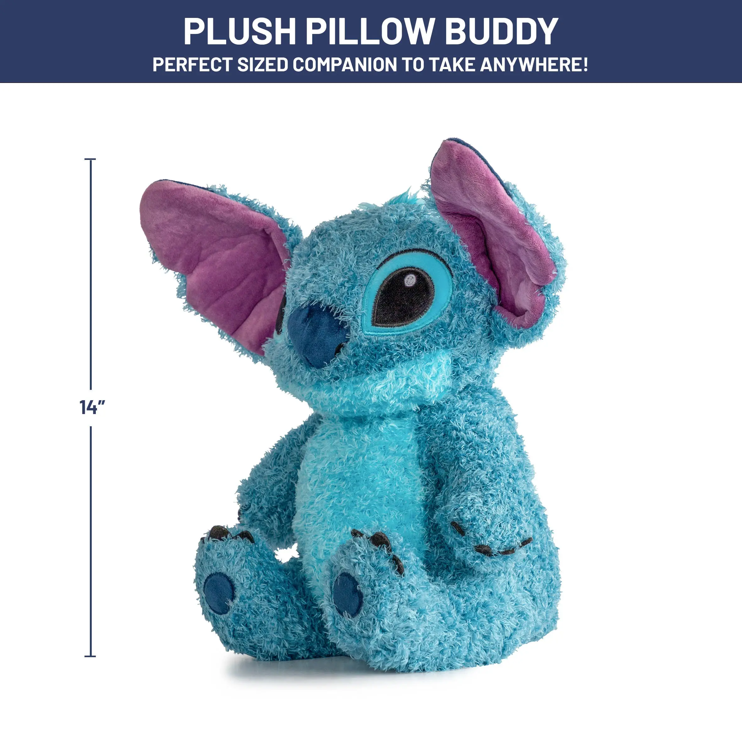 This Lilo and Stitch fuzzy pillow buddy is a great way to transition your child into bedtime with ease! This fun-sized plush pillow is just the right fit for bedtime or playtime. Whether in the car, to school, or to grandma's house, this pillow buddy will never be left behind! Stitch stuffed pillow is collectable approved, making it the perfect gift for your loved one. Made with 100% polyester microfiber, and measures 14 inches tall. Easy care, spot clean only.