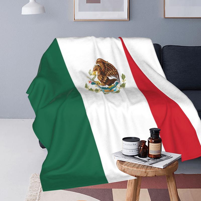 Mexican Flag Flannel Printed Blanket Soft Cozy Fuzzy Plush Comfy Mexico Themed Sofa Bedroom Dorm Couch Office Car Travel Home Blanket Perfect Gift for Birthday Men Women Adults Boys Girls All Seasons