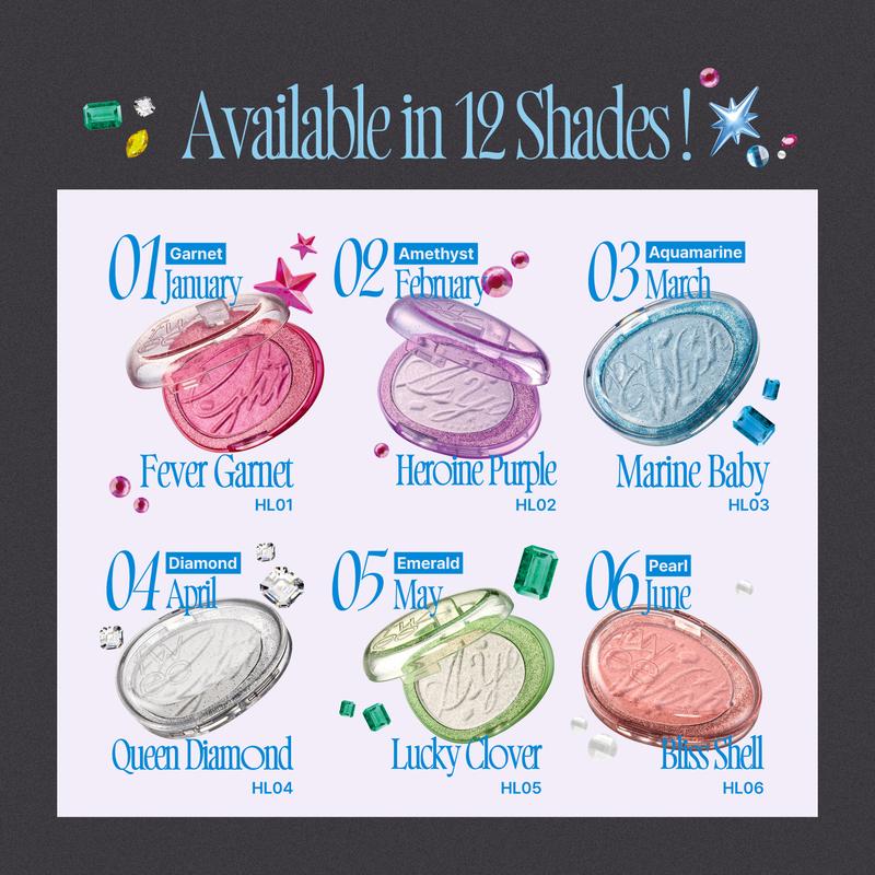 Choose from diverse palette of 12 vibrant, photogenic shades inspired by the sparkles of birthstones, perfect for natural daily shimmer or a bold night-out makeup.