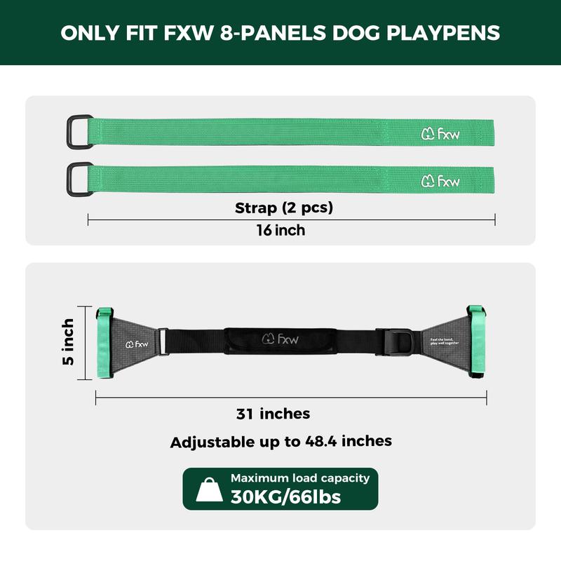 ·【Holds up to 66 lbs.】This Easy Carry Shoulder Straps is made of high-density durable polyester material, which is stronger, more durable, and resistant to deformation. Gravity tested up to 30kg/66lbs, this is enough to support an 8-panel FXW dog playpen of different heights, such as 24"H/32"H/40"H/45"H/50"H. Note: This value has been achieved under test conditions, and the actual load-bearing capacity may vary due to the use of Velcro.