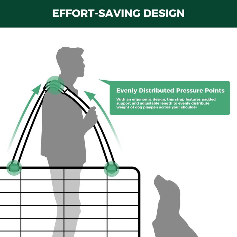 ·【Effort-Saving】Crafted with an ergonomic design, this straps features padded support and adjustable length to evenly distribute weight across your shoulder, transforming the transportation of dog playpens into an effortless task. It maximizes comfort with its effort-saving features and accommodates higher dog playpen setups, ensuring your ease and comfort on the move.