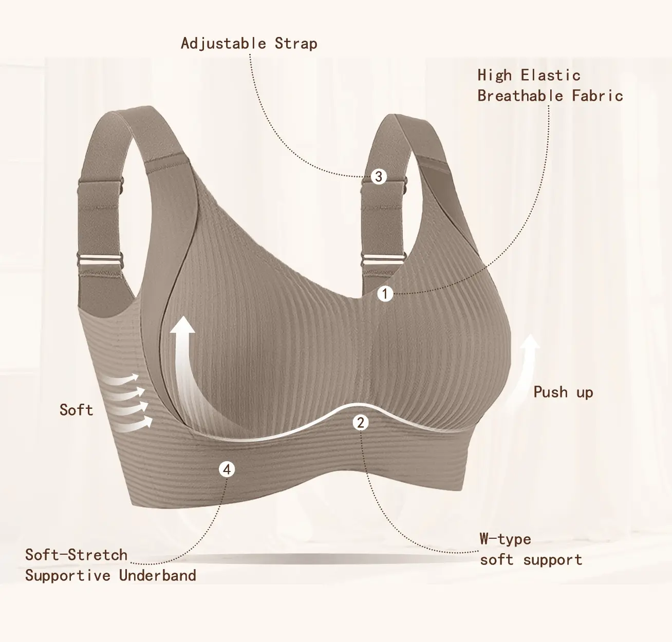 5. FZ 2/4PCS EssElegance Women's Solid Wireless Bra, Comfortable Breathable Push Up Bra, Softness Lightweight Lingerie for All Seasons SpringStatements