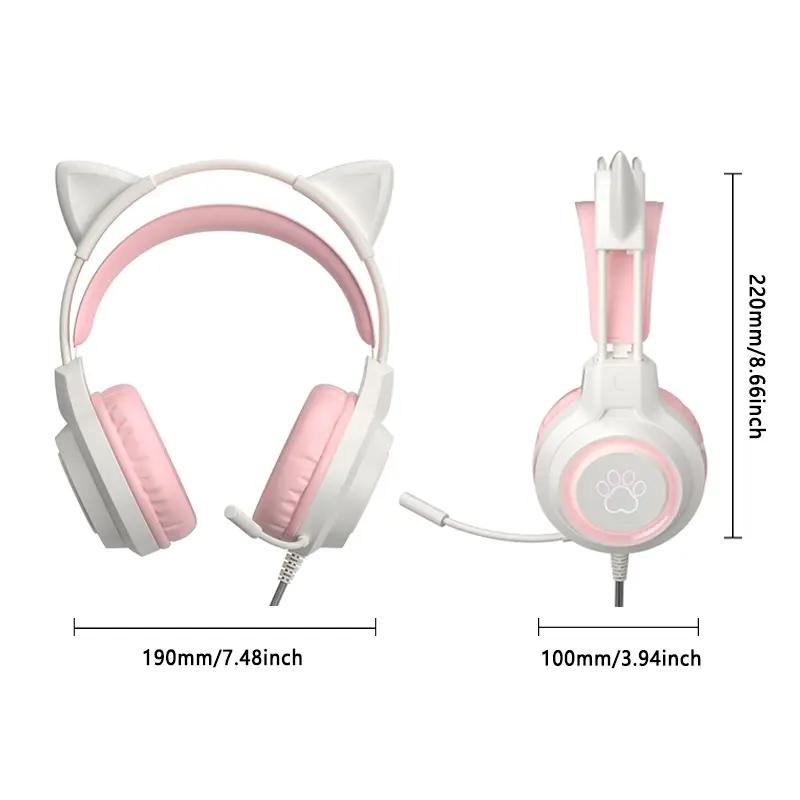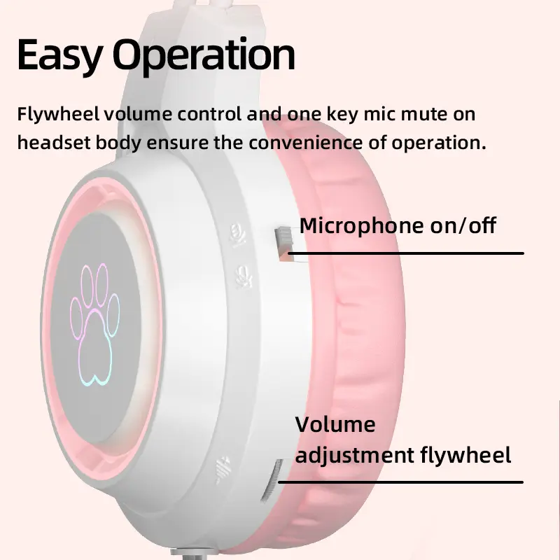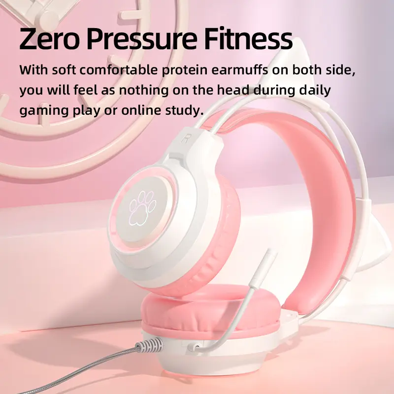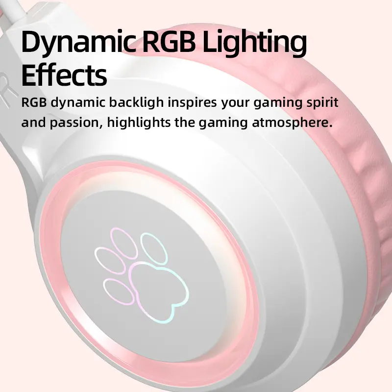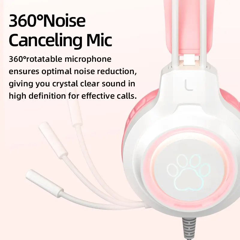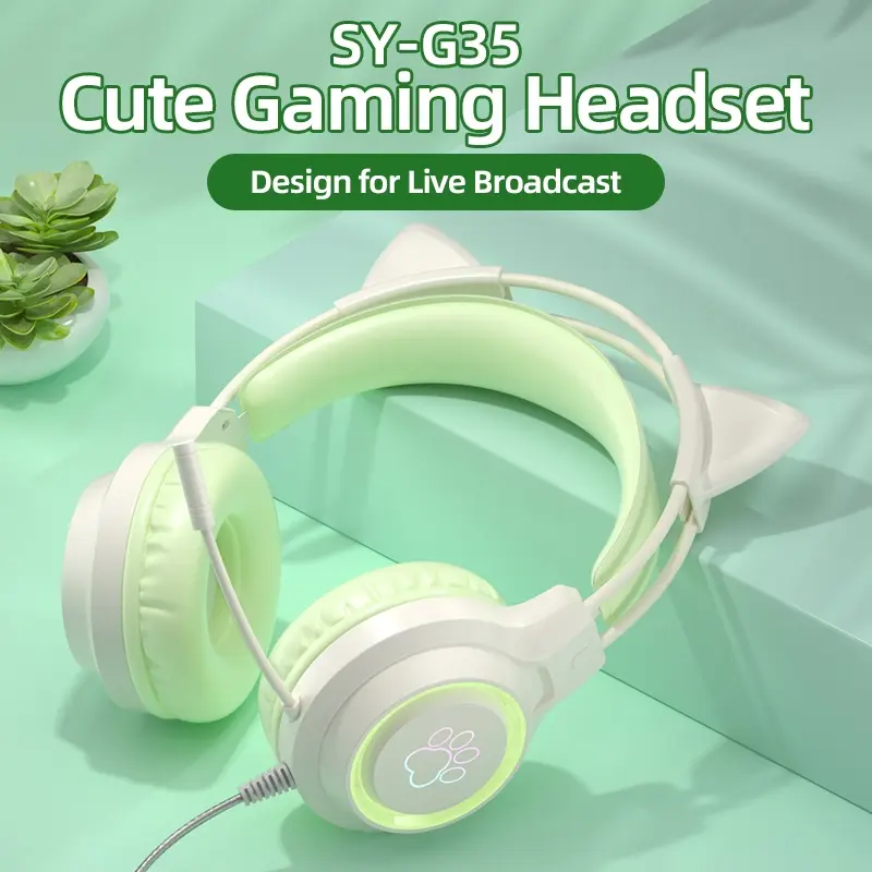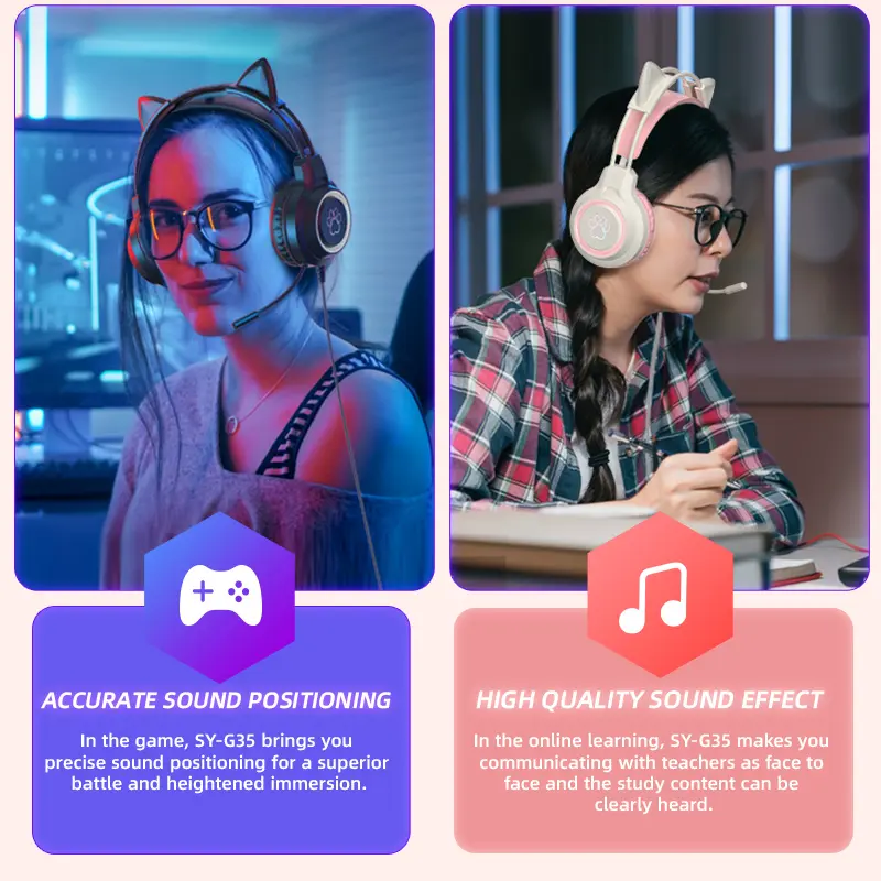 G35 High-Value RGB Gaming Headset with Cute Cat Ear Design, Wired Over-Ear Headphones for PC & Console Games, Multi-Scene Use, PC Gaming Accessories