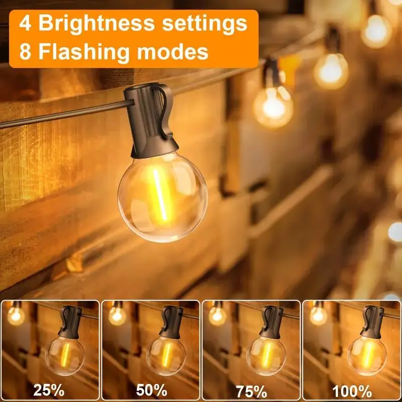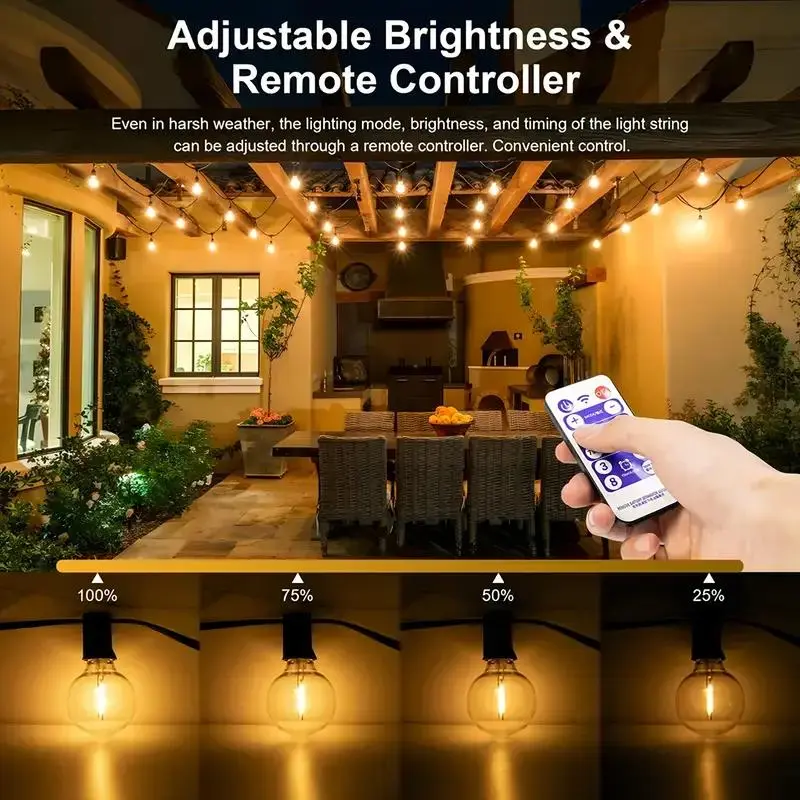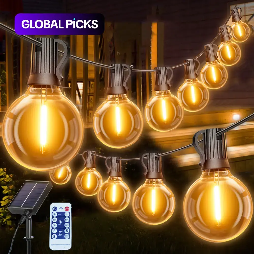 Solar Powered G40 String Light, 1 Box LED G40 Shatterproof Bulb, Dimmable Led Lights Patio Pendant Light with Remote Control, Suitable for Commercial Streets, Cafes, Yards