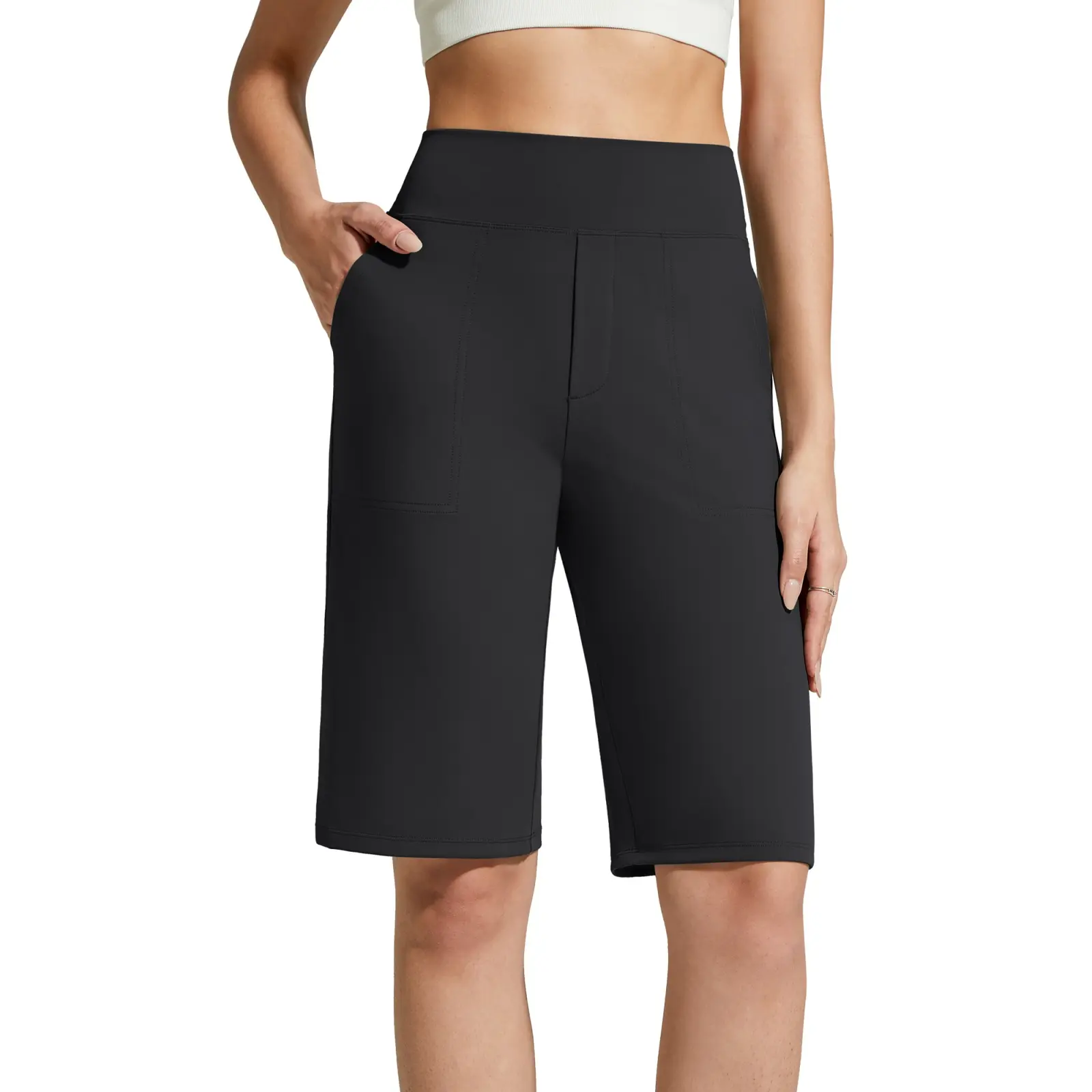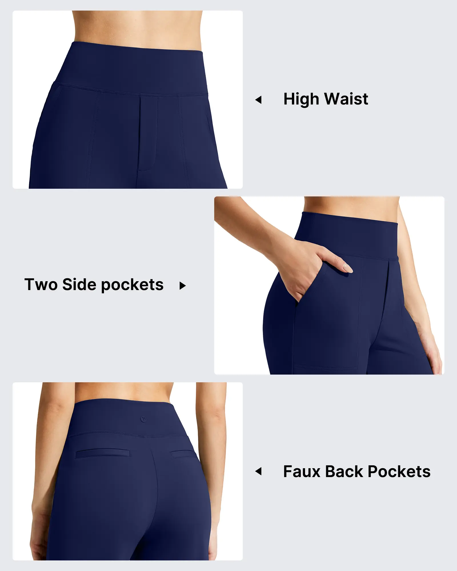 ·High waistband elevates the waistline, with side pockets for your essentials