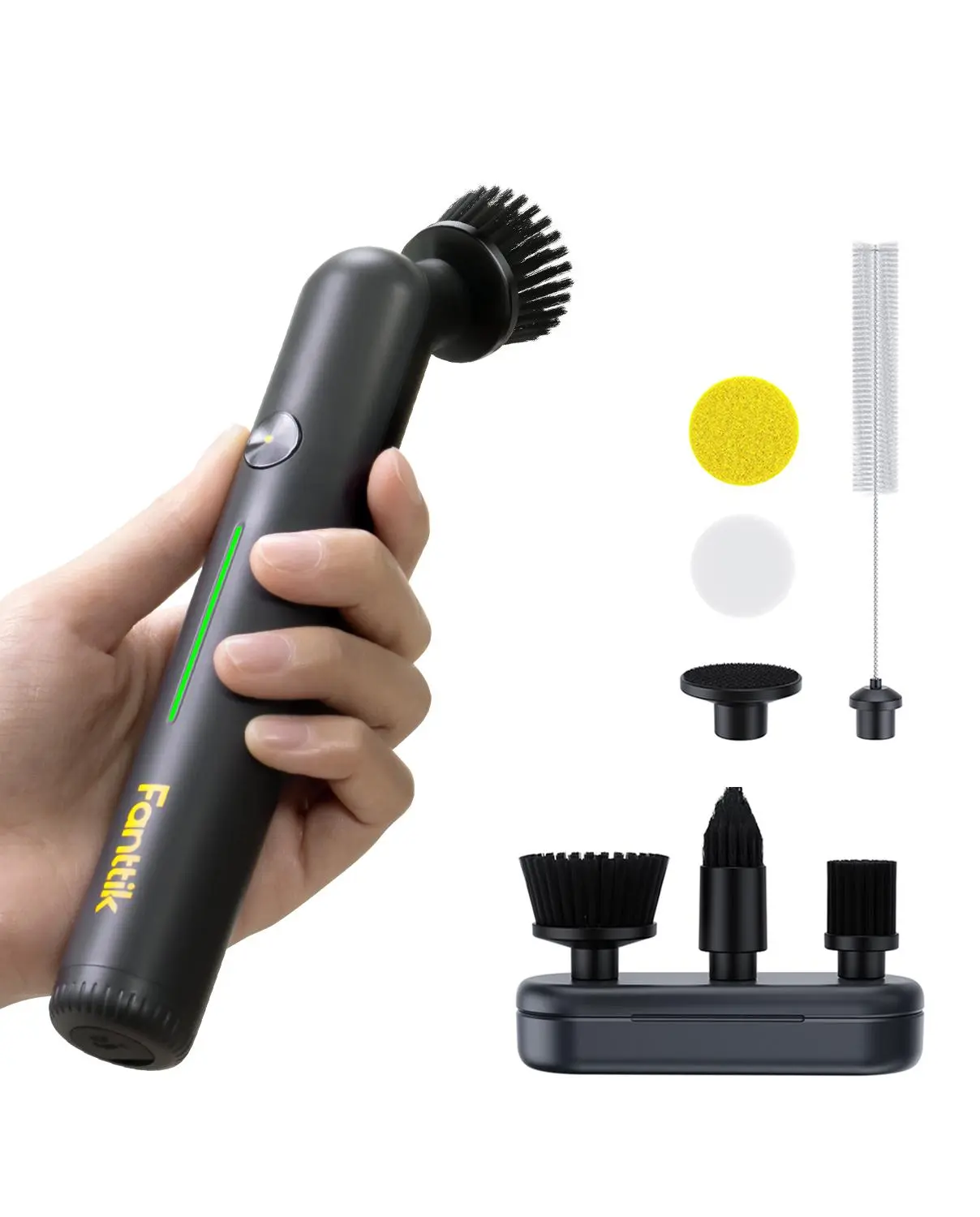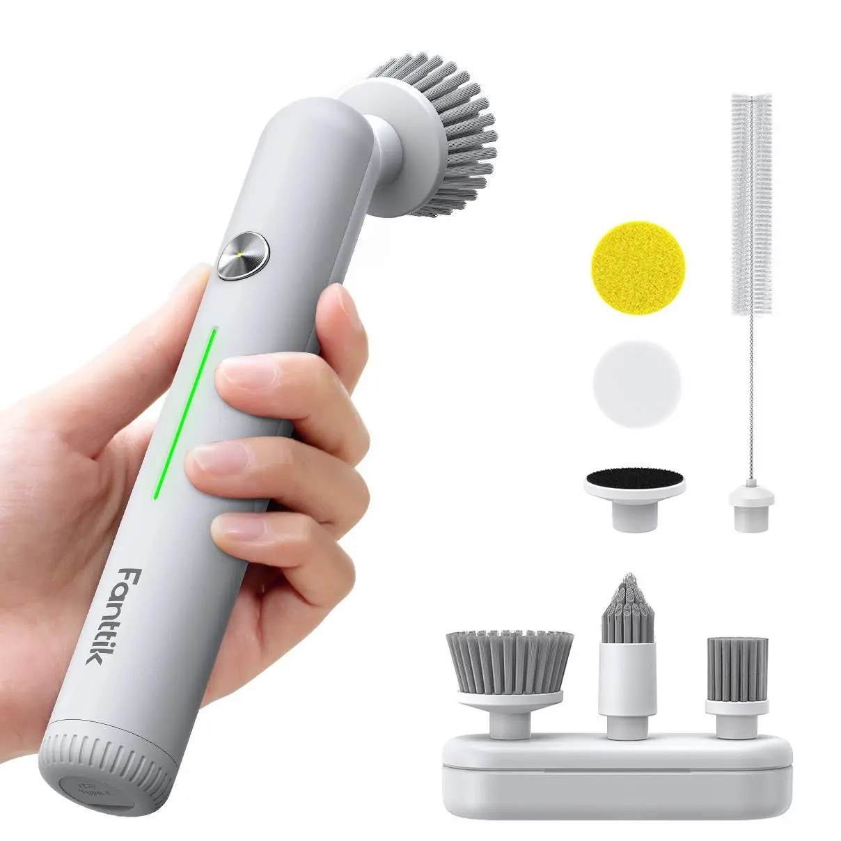 ·8 Brush Heads & Magnetic Storage Box: The Fanttik G9 Nano cordless cleaner is equipped with 8 replaceable brush heads, designed for cleaning tile grout gaps, sinks, faucets, drain pipes, window sill tracks, skirtings, shower heads, devices with small parts. The magnetic storage box can safely store all brush heads, keeping cleaning tools organized and easy to use at any time