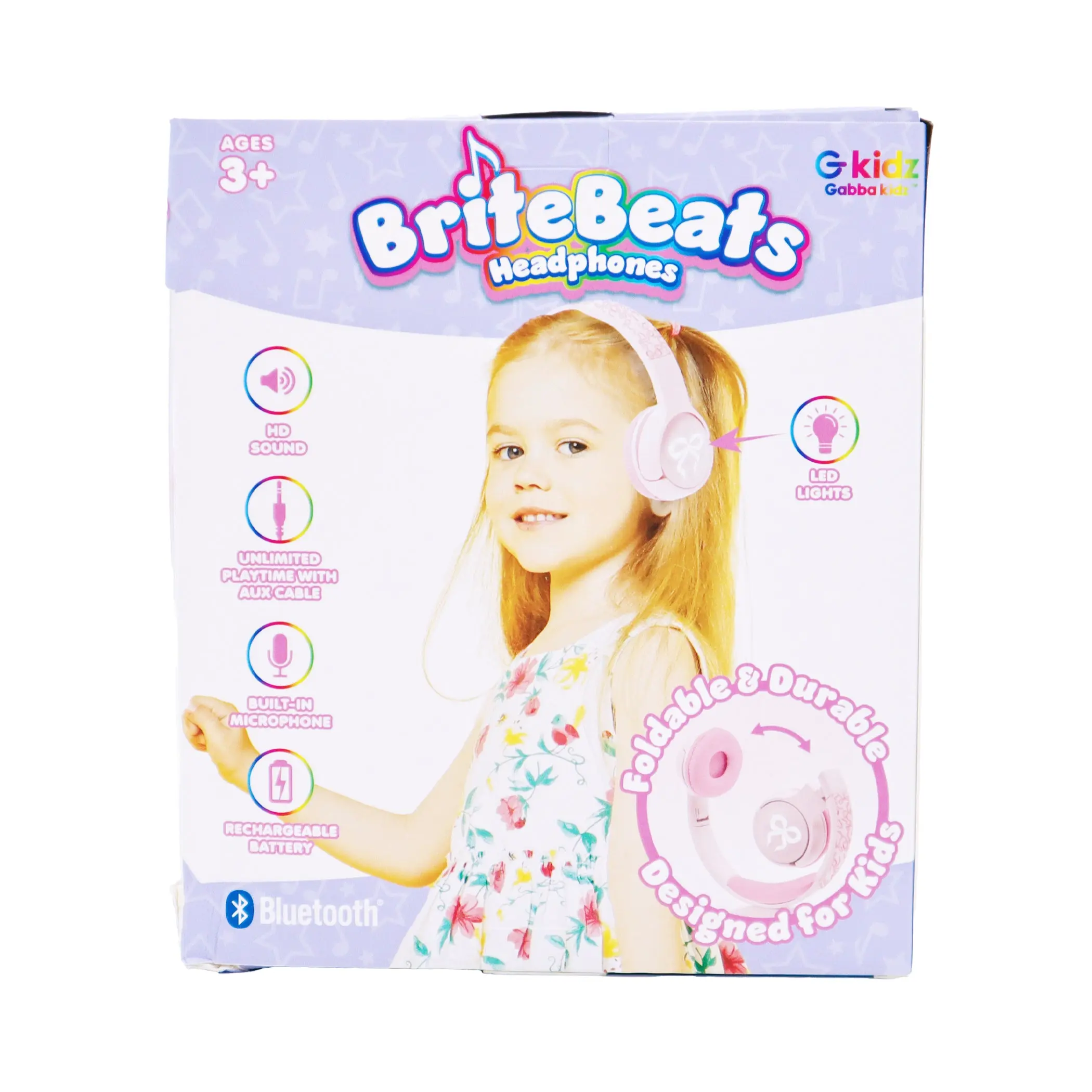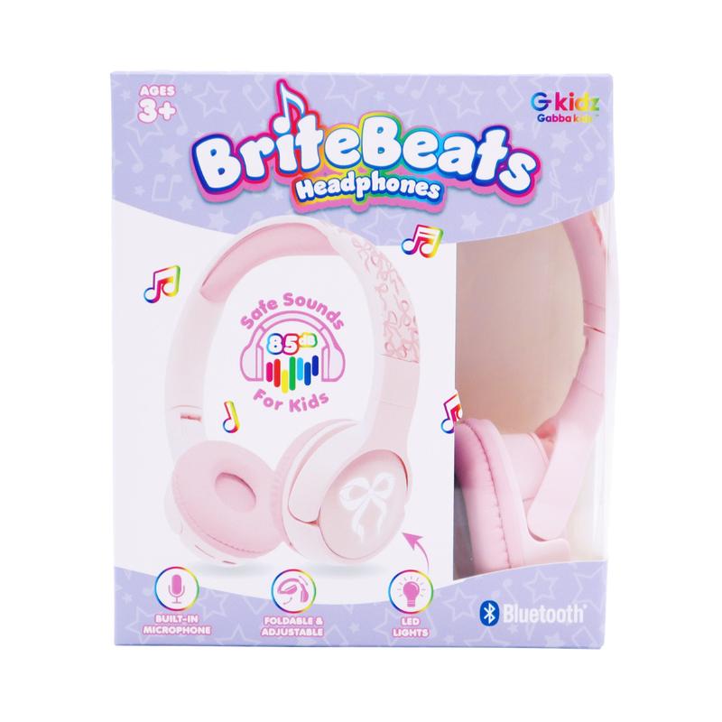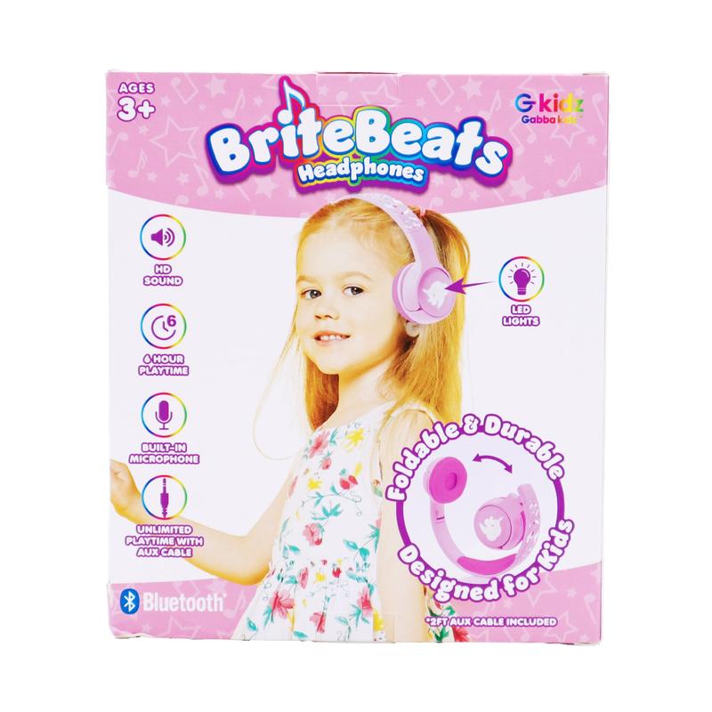 The GabbaGoods BriteBeats Kids Volume Limiting Bluetooth Headphones combine safe listening with colorful fun. Designed specifically for kids, these wireless headphones feature built-in volume limiting technology to protect young ears while delivering clear, high-quality sound. The vibrant LED earcaps light up to match the beat, making music time exciting and expressive. With a comfortable, adjustable fit and tangle-free Bluetooth connectivity, BriteBeats are perfect for school, travel, or playtime—keeping kids entertained and parents worry-free.