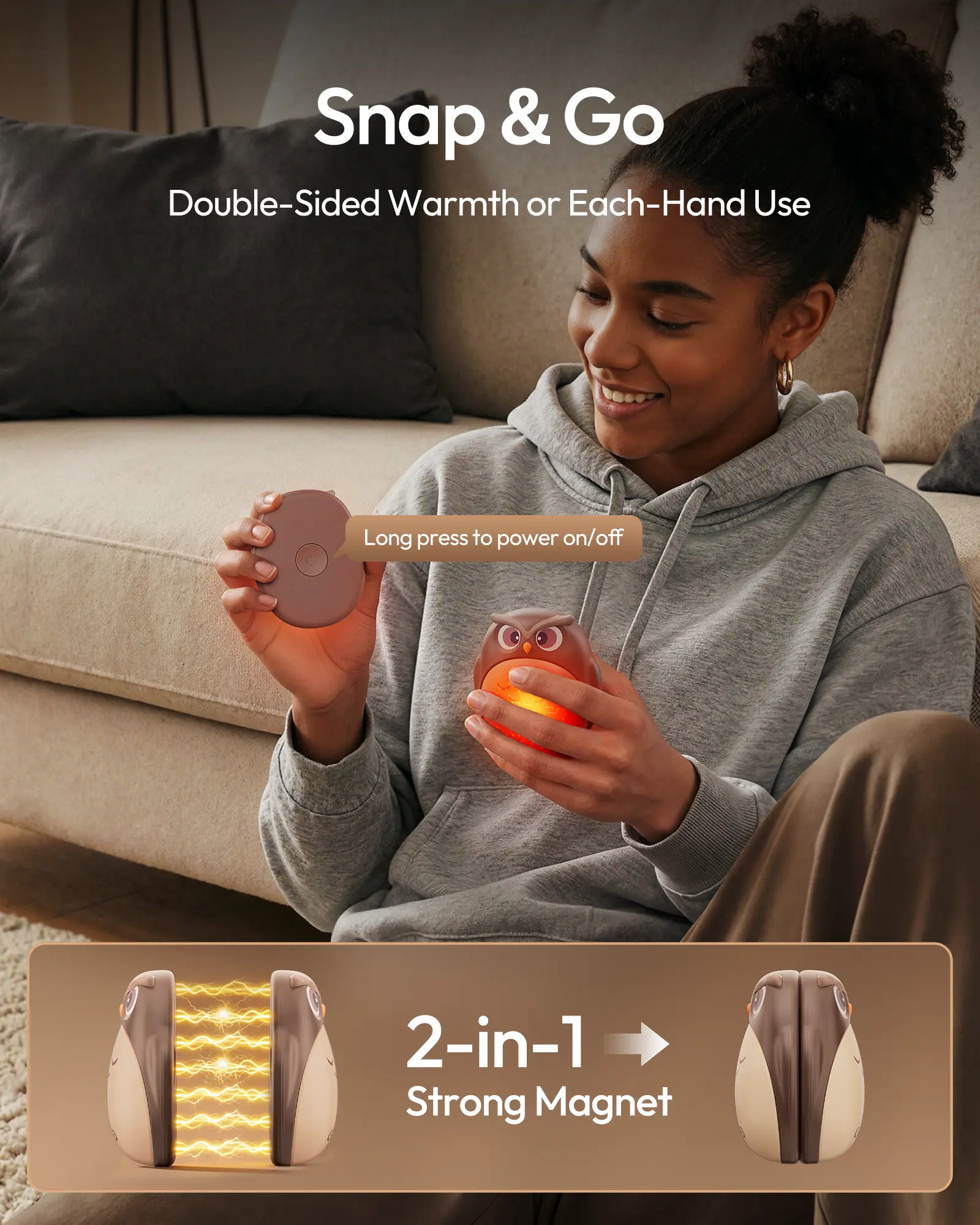 ·Snap Together: Powerful magnets keep the owls together for a double-sided heating experience that fills your palms instantly.