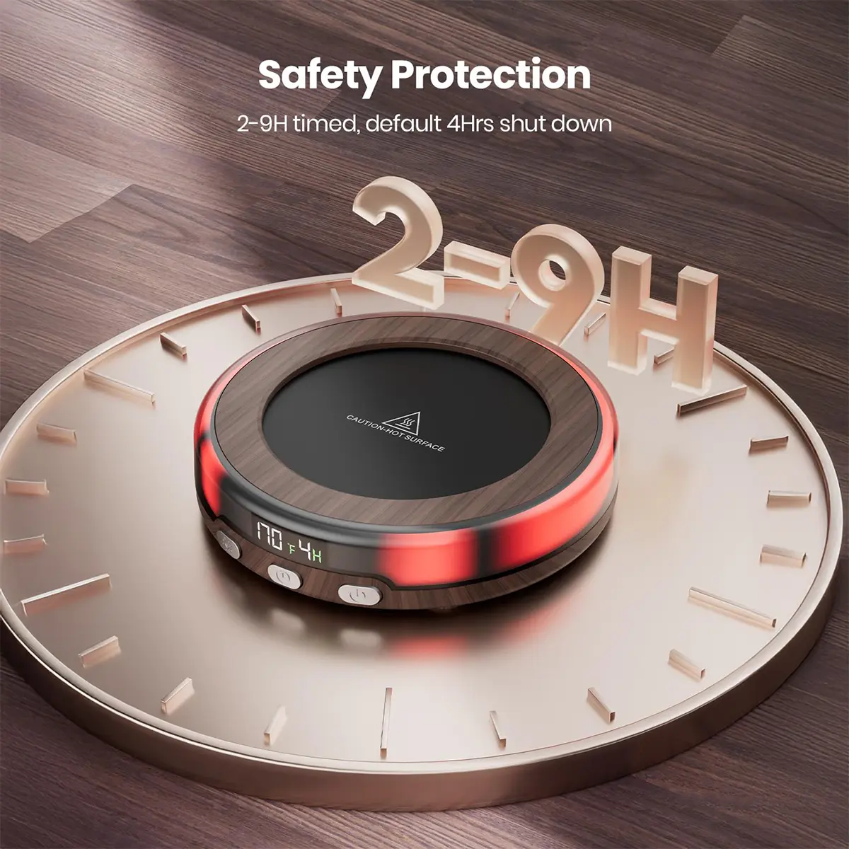 Set the timer to 2, 4, 6, 8, or 10 hours with a quick press, or let it auto-shut off after 4 hours by default. Enjoy hassle-free convenience and peace of mind with this smart tea warmer!
