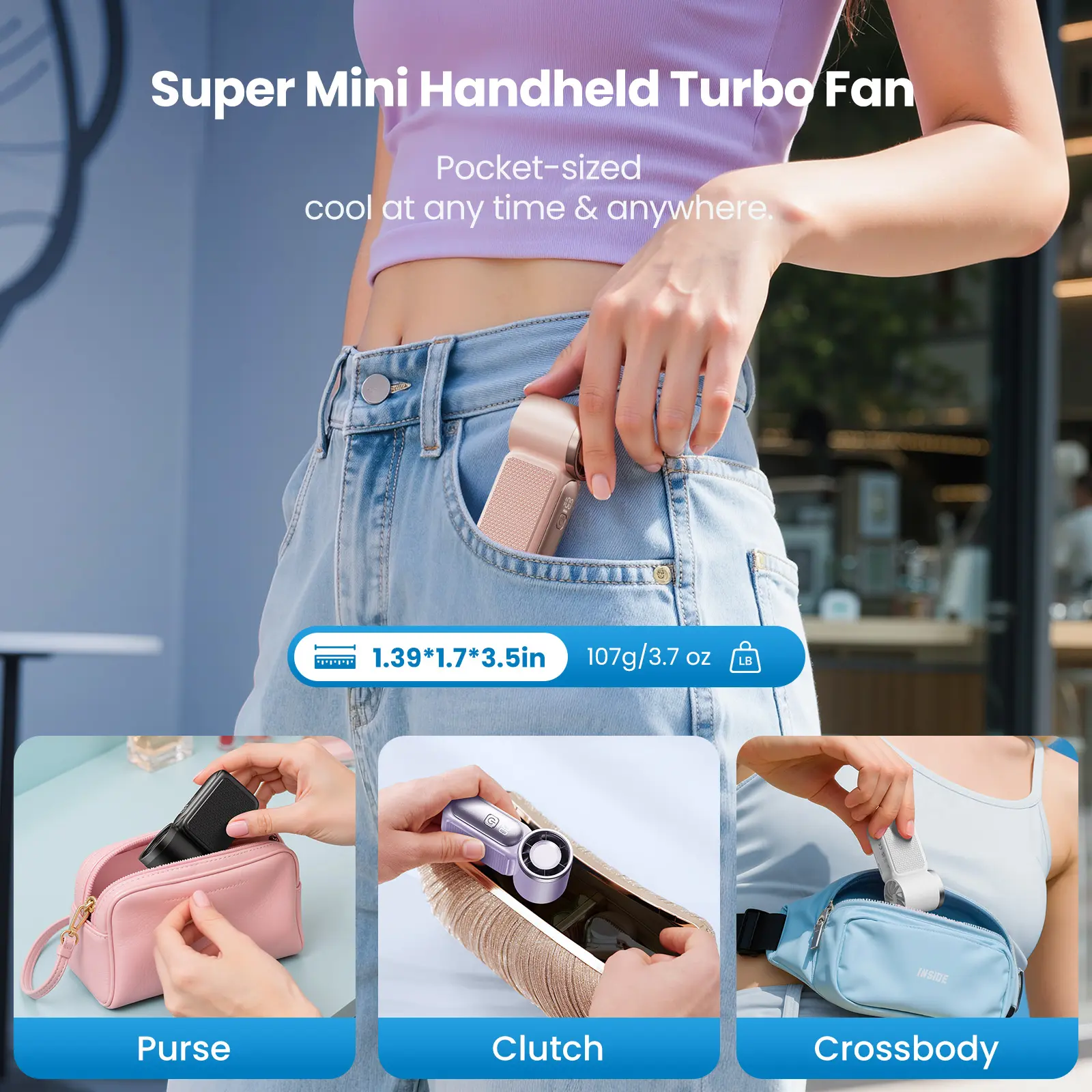 ·Your Summer Must-Have AnywhereThis pocket-sized fan is perfect for camping, concerts, sports events, festivals, or mountain trails. It’s your go-to for beating scorching commutes, lunch break walks, or sweaty subway waits!