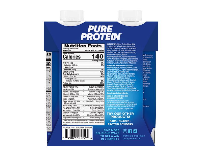 ·HIGH PROTEIN, LOW SUGAR(1), GREAT TASTE: Enjoy the delicious, low-fat, non-GMO Pure Protein Galactic Brownie Batter Shakes. These shakes are designed to support muscle strength and are gluten-free, with only 140 calories, 24 vitamins and minerals—vitamins A, C, D, and E plus Zinc for immune health—and less than 1g of sugar.