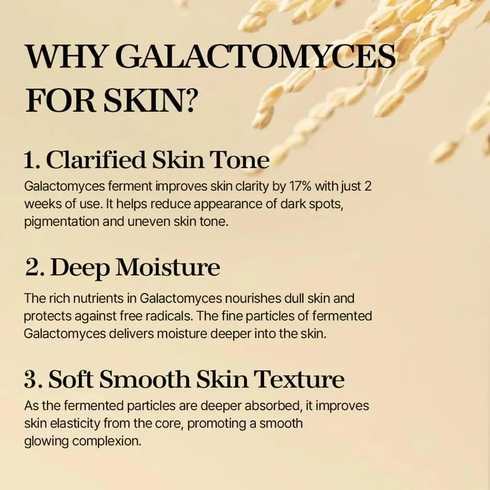 ·Galactomyces Ferment Essence is formulated with 100% Galactomyces Ferment Filtrate. This lightweight essence is designed to combat skin discoloration, pigmentation, and acne scarring, delivering a brighter and more even skin tone.