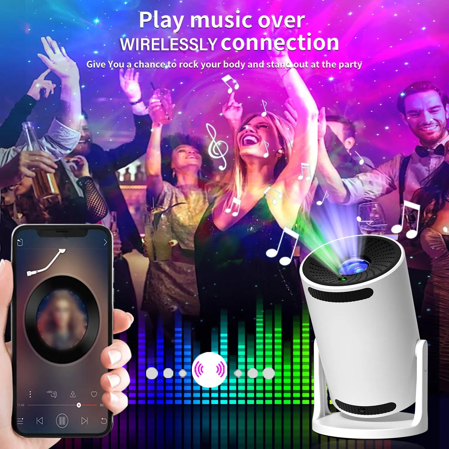 5. Galaxy Projector Star Lamp, Starry Sky Projector, Space Star Projection Decorative Light with Wireless Speaker, Remote Control Dimmable Timed Color Changing Projector Lamp for Home