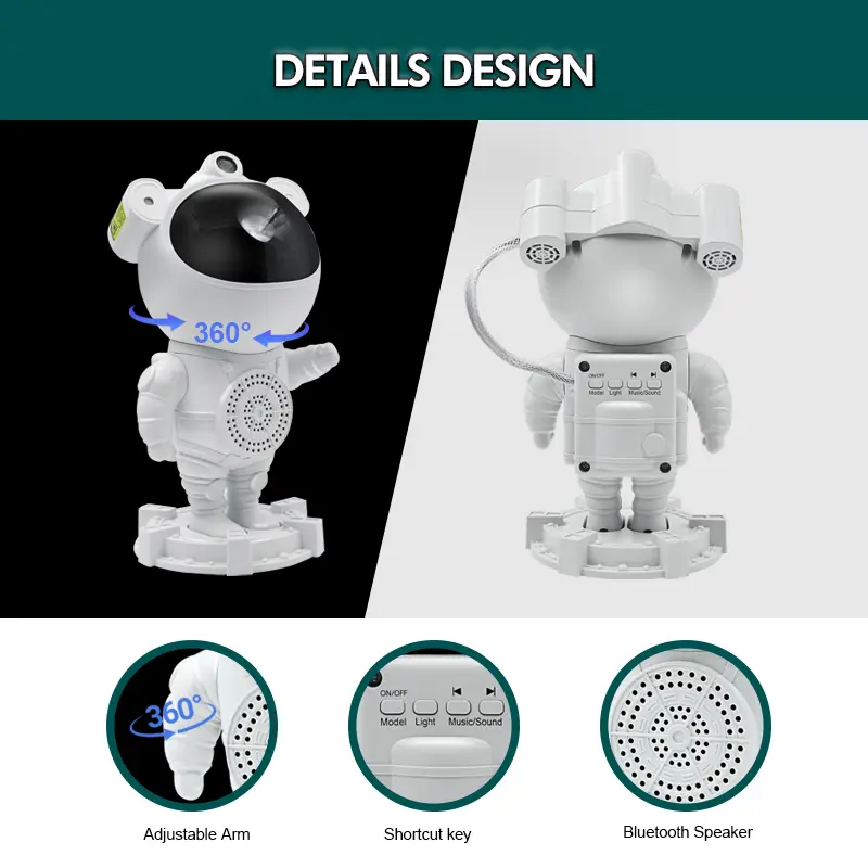 Enjoy 7 white noise sounds: Ocean, Campfire, Lullabies, Birdsong, River, Natural morning sound, and Twinkling Stars. Fight insomnia and fall asleep easily under the romantic galaxy light. Perfect for kids and adults.