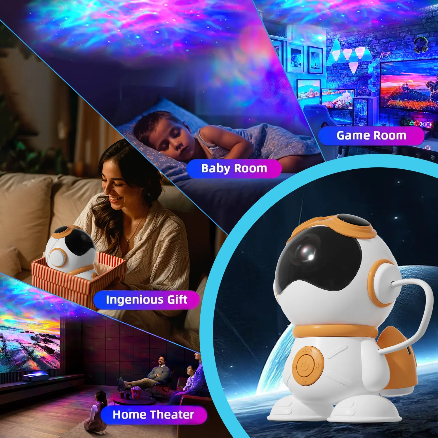 Remote Control & Auto-off Timer - Along with the 4-in-1 star projector galaxy light, you also get a remote control that allows you to control color lighting, projection mode, brightness, speed, music selection, volume and timer. . The remote control and auto timer are easy to use and provide flexibility when trying to set a timer to turn off at a certain time.