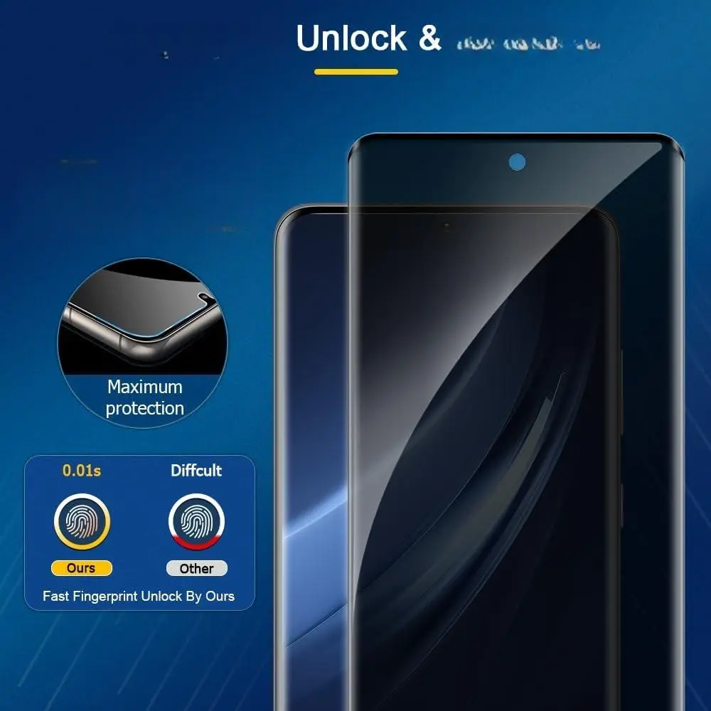 ·● Anti-spy: The screen image is visible in the direction of 90 degrees from the front of your phone, but not visible outside the area that is 35degrees to the left or the right. ● Support ultrasonic fingerprint ID. Response quickly.