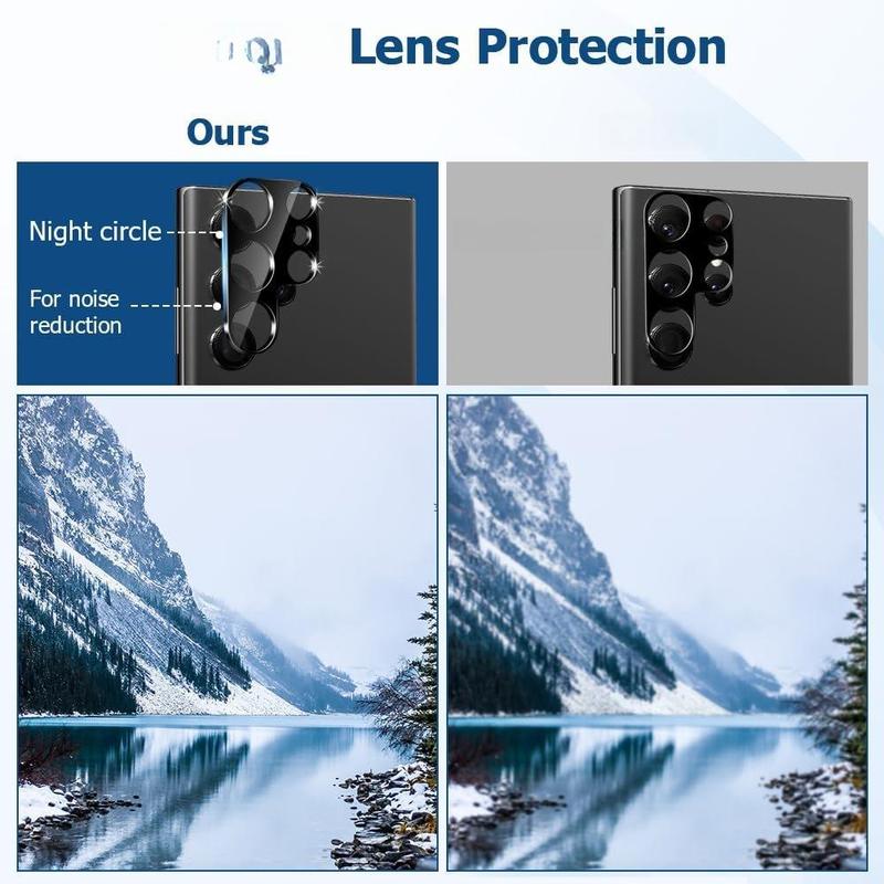 ·Camera lens protector film double protection:Nano static automatic adsorption technology, easy to install, not easy to fall off, without any bubbles or white edges, the edges will not warp. Up to 9H hardness tempered glass protects the camera from scratches, shatterproof and high impact drops. Anti-fingerprint coating to keep clean, light transmission rate of 99.99%, compatible with night shot function, these features allow you to keep your phone photos original at all times.