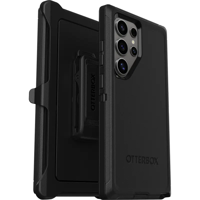 Legendary durable Galaxy S24 Ultra case, Defender Series, with a multi-layer construction guards your device from serious drops, dirt, scrapes and bumps. Wireless ready, it works with Qi charging. Plus, the included holster does double duty as a belt clip or hands-free kickstand.