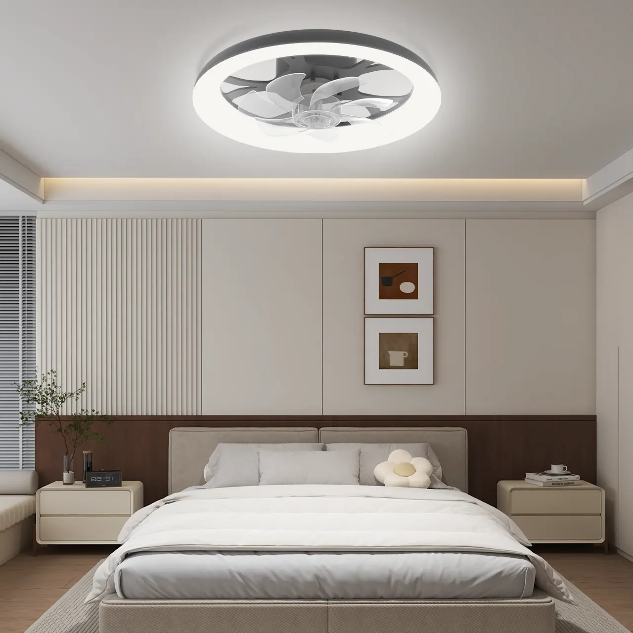 Sleek Modern Appearance: Designed with a minimalist ceiling-mounted style, this ceiling fan with light seamlessly fits various decor themes, including modern, Scandinavian, and industrial designs. Made with premium materials, its elegant structure enhances the aesthetic appeal of any space, whether installed in a bedroom, living room, or dining area. Beyond its functional benefits, it serves as a stylish decorative piece, adding sophistication and charm to your home