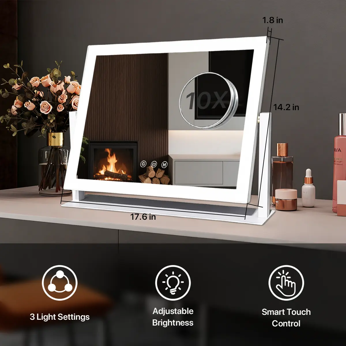 ·Features a powerful 10x magnification lens that can be easily detached. Perfect for precise makeup application, eyebrow grooming, or detailed skincare routines.