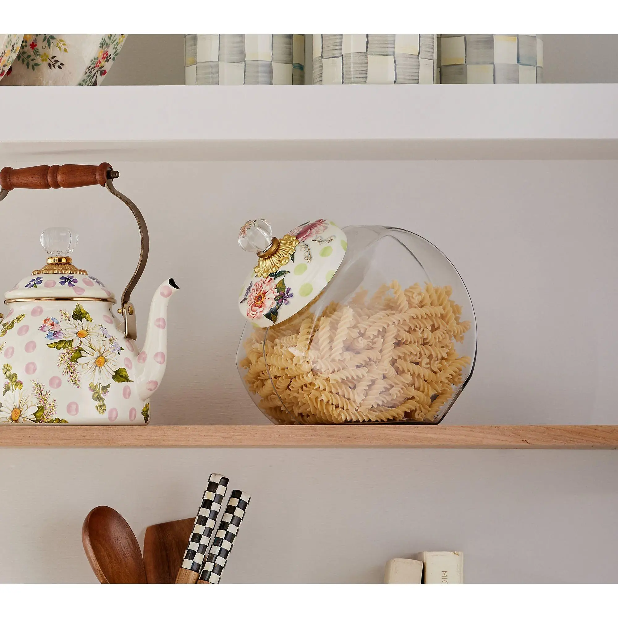 Perfect for snacks on the kitchen counter OR in the bathroom full of hair bows and ribbons 🎀 #comeshopwithme #comeshoppingwithme #glassjars #fashiontiktok #mackenziechilds #qvc @QVC, Inc @MacKenzie-Childs