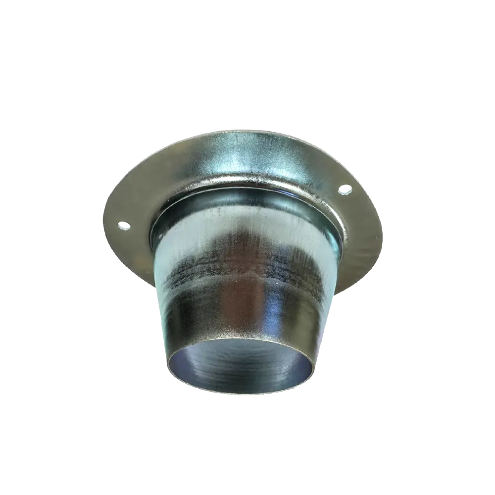 This metal downspout attaches to your metal or plastic feeder barrel and helps direct the feed onto the spinner plate. Just a hole cut in the barrel can lead to wasted feed or wind-driven water penetration into the barrel. Use three self-tapping screws (not included) to install in minutes!