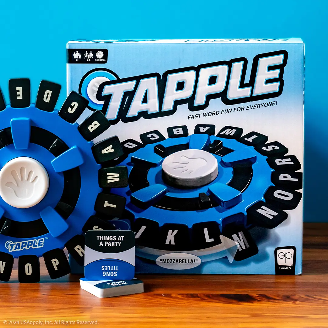 Fast Word Fun for the Whole Family! The Original Tapple is the award-winning, fast paced word game that gives players a rush of excitement as they race to beat the clock! Challenge friends and family to tap letters of the portable wheel as you come up with words for various categories before the ten-second timer runs out! Just say a word, beat the timer and win!
