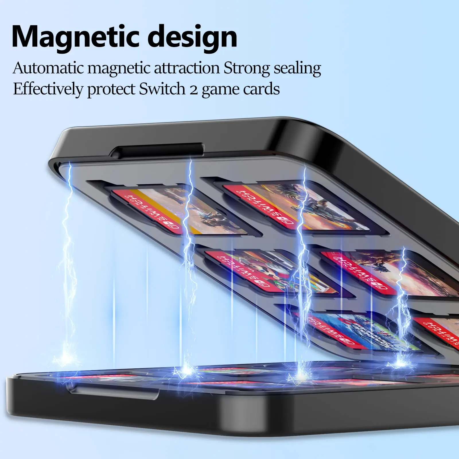 Magnetic Clasps:Don't worry about your Switch 2 game card pulling out of the box inadvertently,The magnet will take care of each of your game cards.