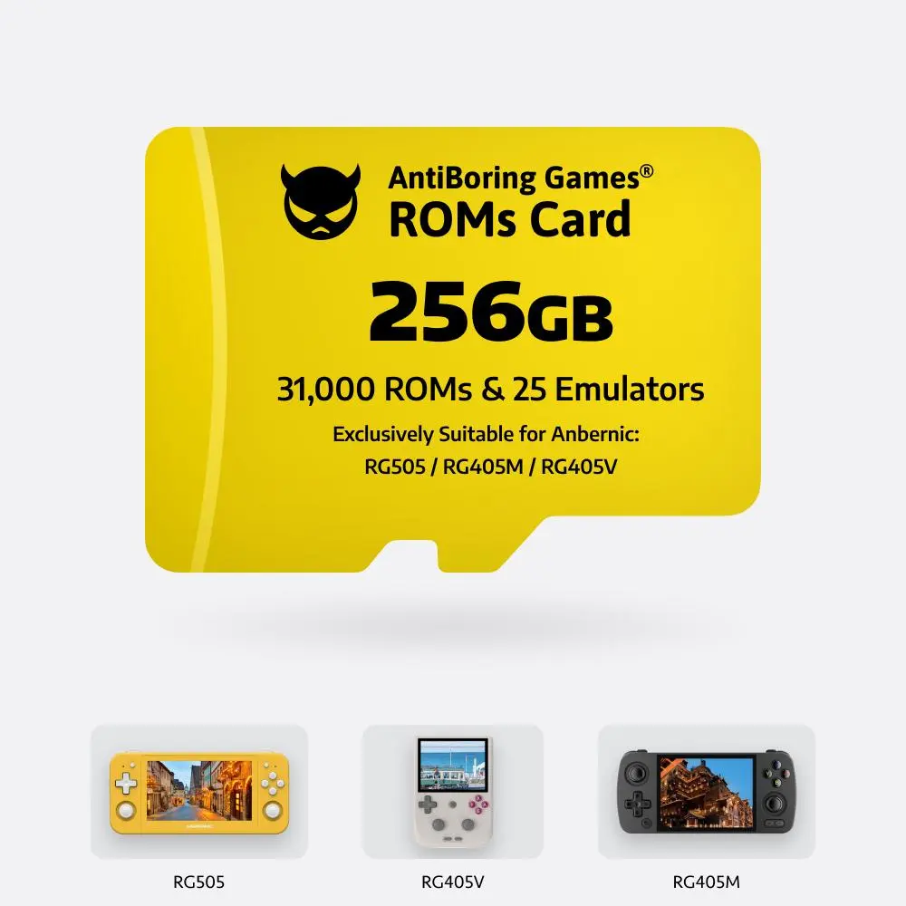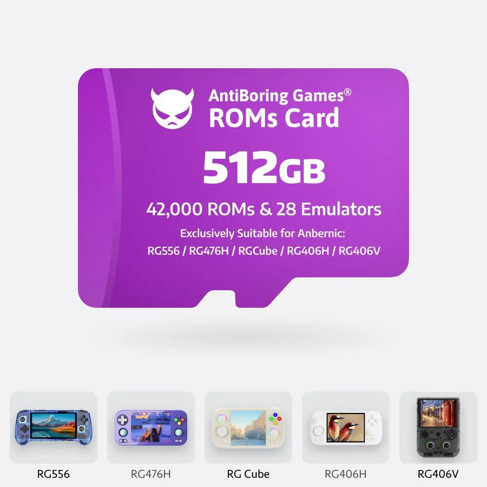 Imagine having thousands of classic games ready to play on your Anbernic handheld without the hassle of downloading or setup. Our All-In-One Games Card is designed just for that! Tailored specifically for popular Anbernic models like RG556, RG40XX, RG35XX, and more, these cards come preloaded with massive ROM libraries ranging from 15,500 to over 42,000 games, plus numerous emulators to keep your retro gaming alive. Whether you pick the 128GB, 256GB, 512GB, or the whopping 1TB version, you get plug & play convenience—no internet or extra software needed. Inside the box, you’ll find the game card and a handy instruction card to get you started. Ready to relive your favorite classics anytime, anywhere? Grab the perfect games card for your Anbernic console and dive into endless fun today!