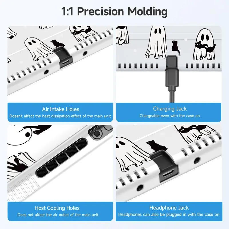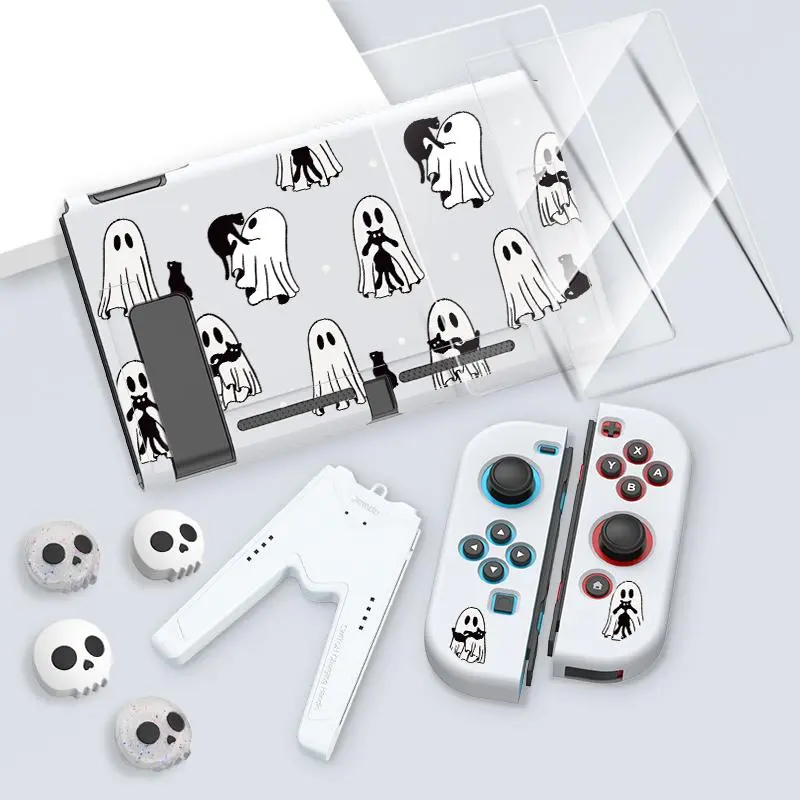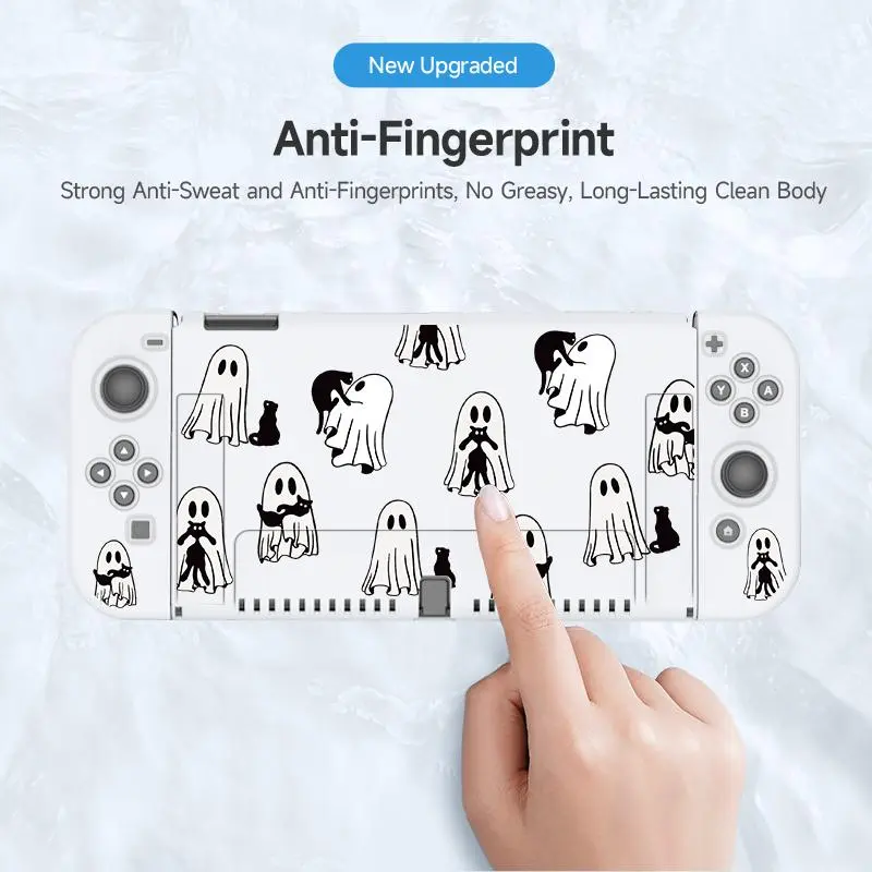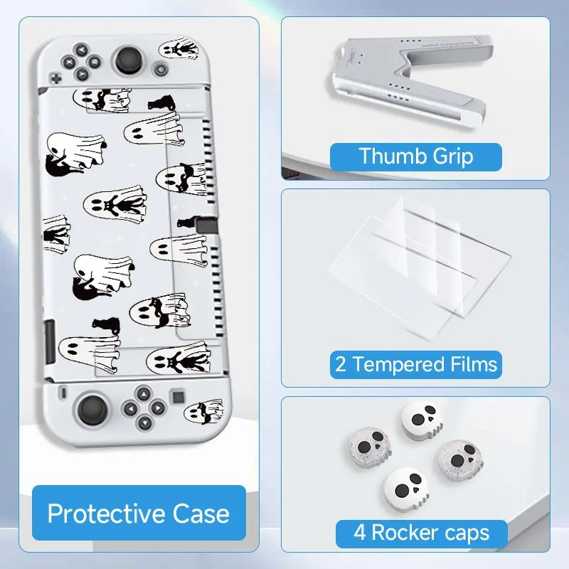 Ever get tired of slippery controllers or worrying about scratches on your Switch OLED or NS? This Ghost Pattern Game Console Accessories Set has you covered with a protective silicone cover and tempered film that guard your device from everyday wear and tear. The V-shaped grips are a game-changer, offering enhanced control and comfort during marathon gaming sessions, while the rocker caps improve your gameplay precision. Made with anti-fingerprint and anti-sweat materials, your console stays clean and fresh-looking no matter how intense the action gets. Plus, you can keep charging your console and use headphones without ever taking off the case—talk about convenience! The set includes everything you need to upgrade your gaming experience, all molded perfectly to fit your device. Level up your Switch protection and play smarter with this sleek, functional accessory set. Ready to game on? Grab yours and feel the difference!