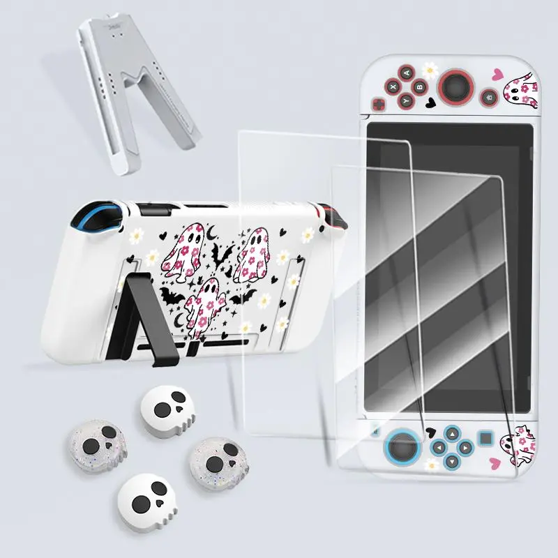 Ever dropped your Switch and wished for better protection with a splash of personality? This Cute Ghost Pattern Game Console Protective Case is your new best friend. Designed with durable silicone TPU, it shields your Switch OLED, NS, or Lite from dust, scratches, and drops while showing off a playful ghost design. The set includes 2 HD tempered films to keep your screen flawless and 4 soft silicon thumb caps plus rocker caps for enhanced grip and control. Thanks to the V-shaped grip, your hands stay comfy during marathon gaming sessions. Plus, the case’s precise molding ensures all ports like charging and headphone jacks stay accessible. Air intake and cooling holes help keep your console cool so you can game longer without worry. Whether you're treating yourself or gifting a gamer buddy, this colorful, protective case set is a win-win. Grab yours now and level up your gaming style and safety!