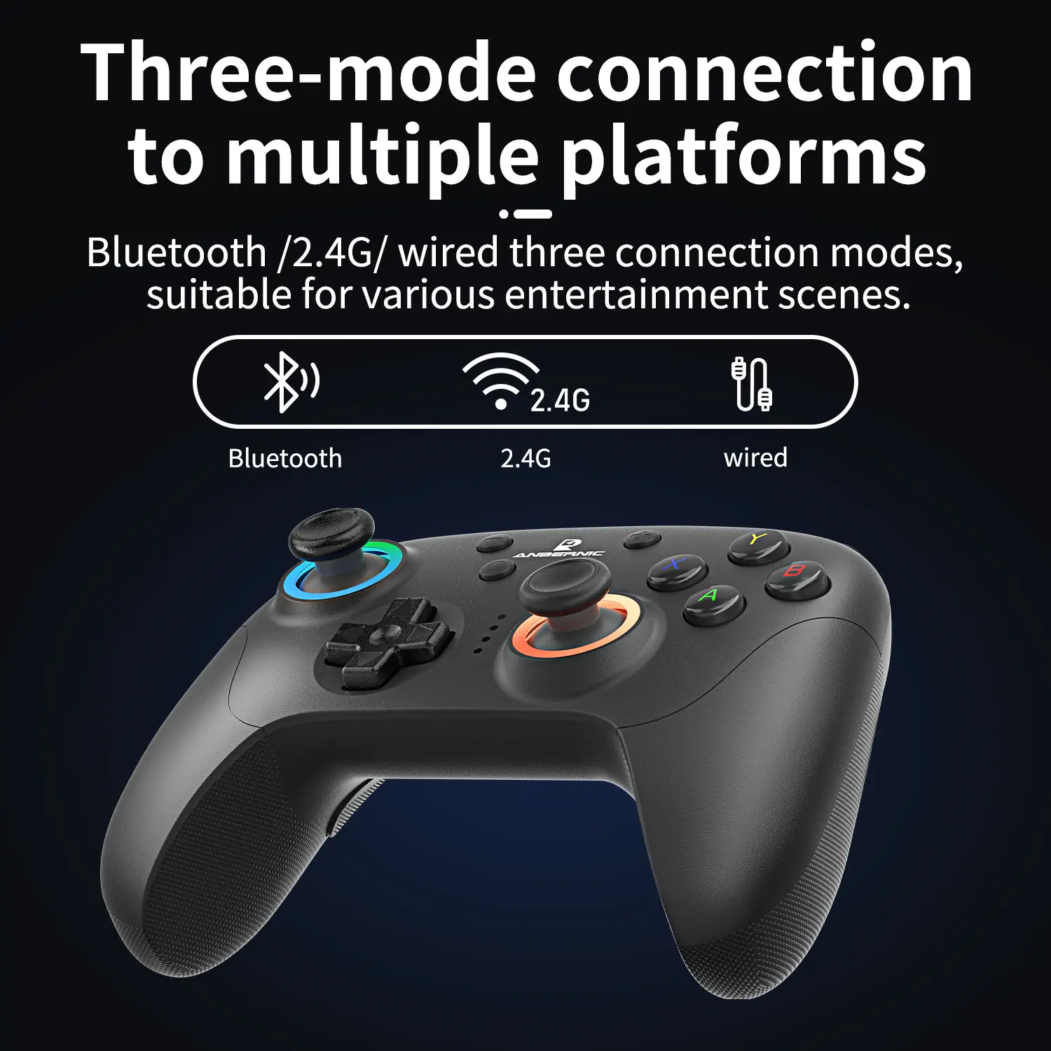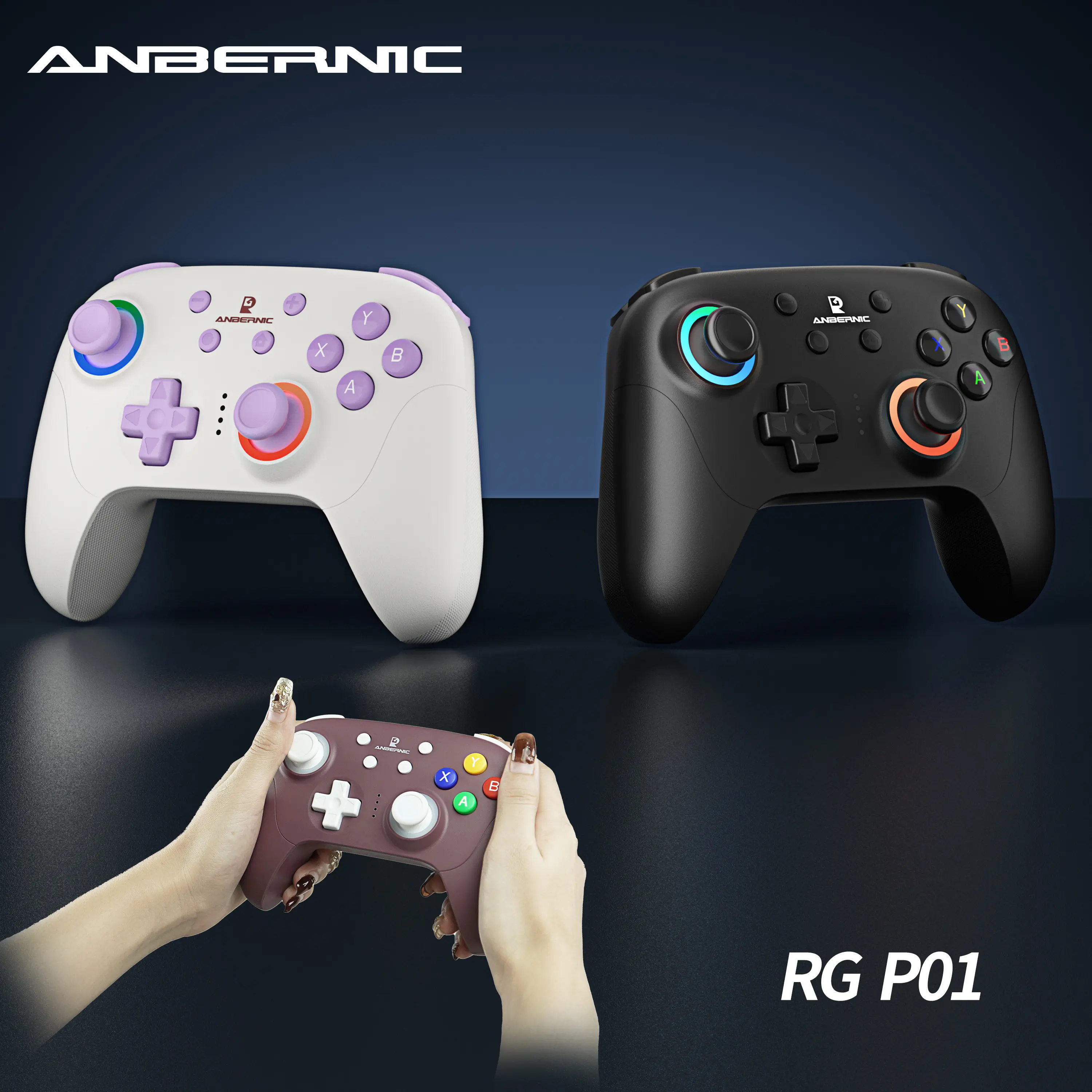 Ever wish your game controller could keep up with all your devices? The ANBERNIC RG P01 is your all-in-one gaming buddy, working effortlessly with PC, Steam, Switch, Android, and iOS. Whether you prefer wired, Bluetooth 5.3, or 2.4G wireless connections, this controller adapts to your play style. Precision is king here, thanks to Hall effect joysticks and triggers that deliver smooth, accurate control. Feel every move with six-axis motion sensing and dual asymmetric motors providing rich vibration feedback. Customize your gaming vibe with a dazzling 16 million color RGB light ring and set macros on dual back keys for ultimate control. Built-in rechargeable battery gives you 9 hours of uninterrupted fun. The controller sports an Xbox-style layout for familiar handling and weighs just 204g for comfortable sessions. Inside the box, you get the RG P01 controller ready to connect and play. Ready to level up your gaming setup? Grab the RG P01 and enjoy versatile, precise, and immersive gameplay wherever you go!