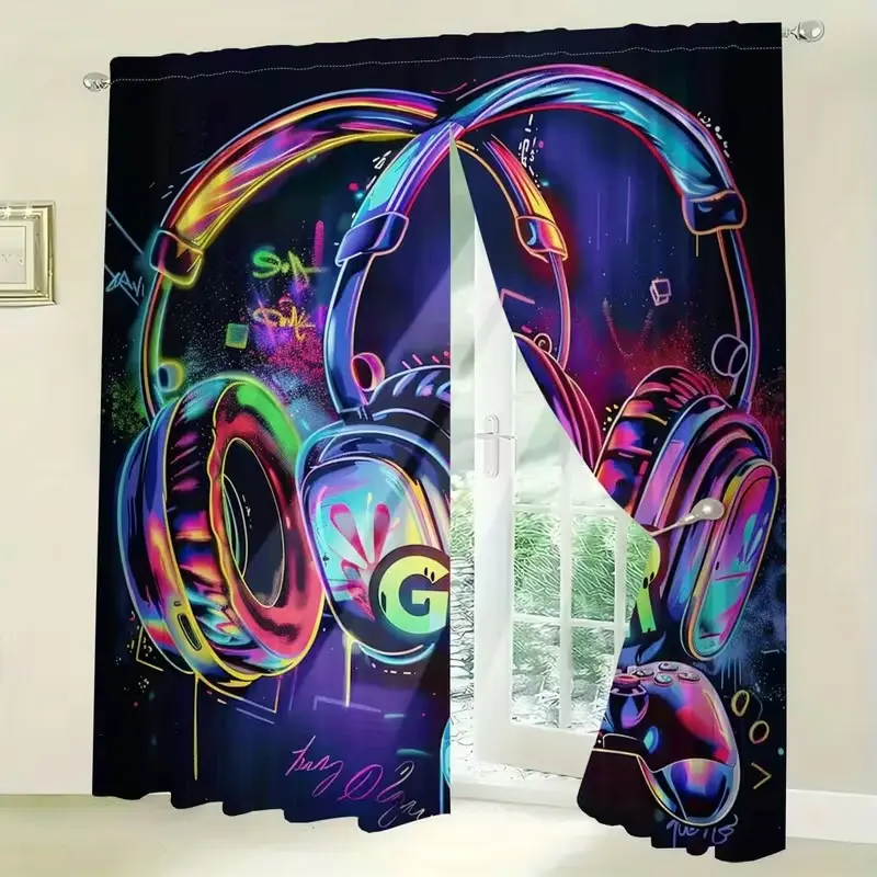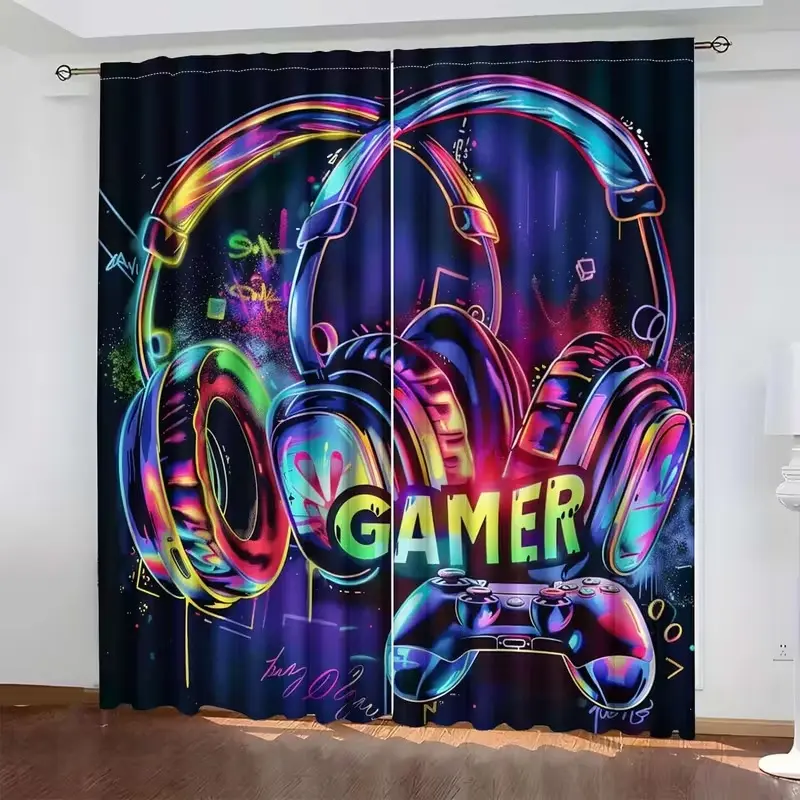 Game Controller Theme Curtain Set, Half-Transparent Design for Room Decoration, Perfect Gift for Gamers and Gaming Enthusiasts