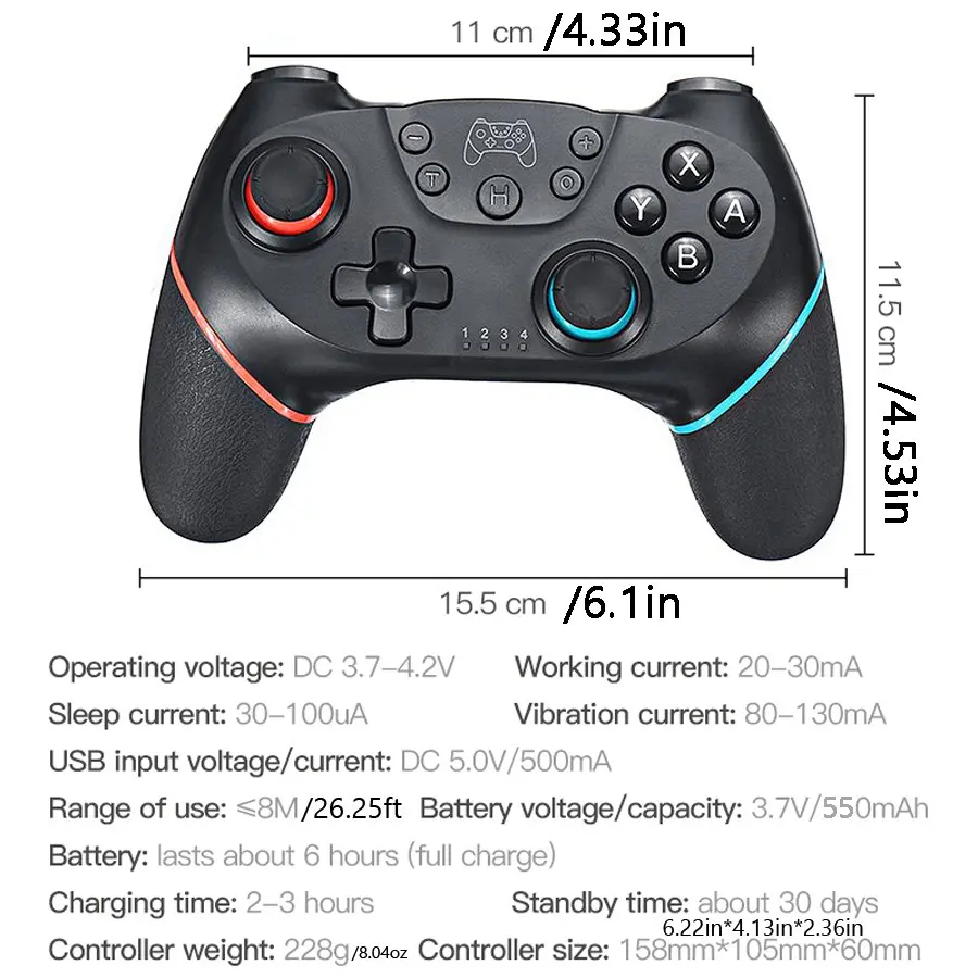 Ever get tired of tangled wires or laggy controllers ruining your gaming vibe? This USB rechargeable wireless Bluetooth gamepad is here to level up your playtime. Designed with dual joysticks and high-sensitivity buttons, it offers precise control whether you're racing or shooting. Its ergonomic shape fits comfortably in your hands, making those marathon sessions feel effortless. Compatible with Nintendo Switch, OLED Lite, and PC, it connects easily with no driver hassle—just pair and play. The built-in 380mAh battery gives you about 6 hours of uninterrupted gaming, and charging only takes 2-3 hours. Plus, enjoy immersive features like 6-axis gyroscope and dual motor vibration for a realistic experience. Inside the box, you get the gamepad itself, ready to go right out of the package. Ready to ditch the wires and dive into wireless freedom? Grab this controller and take your gaming anywhere with ease!