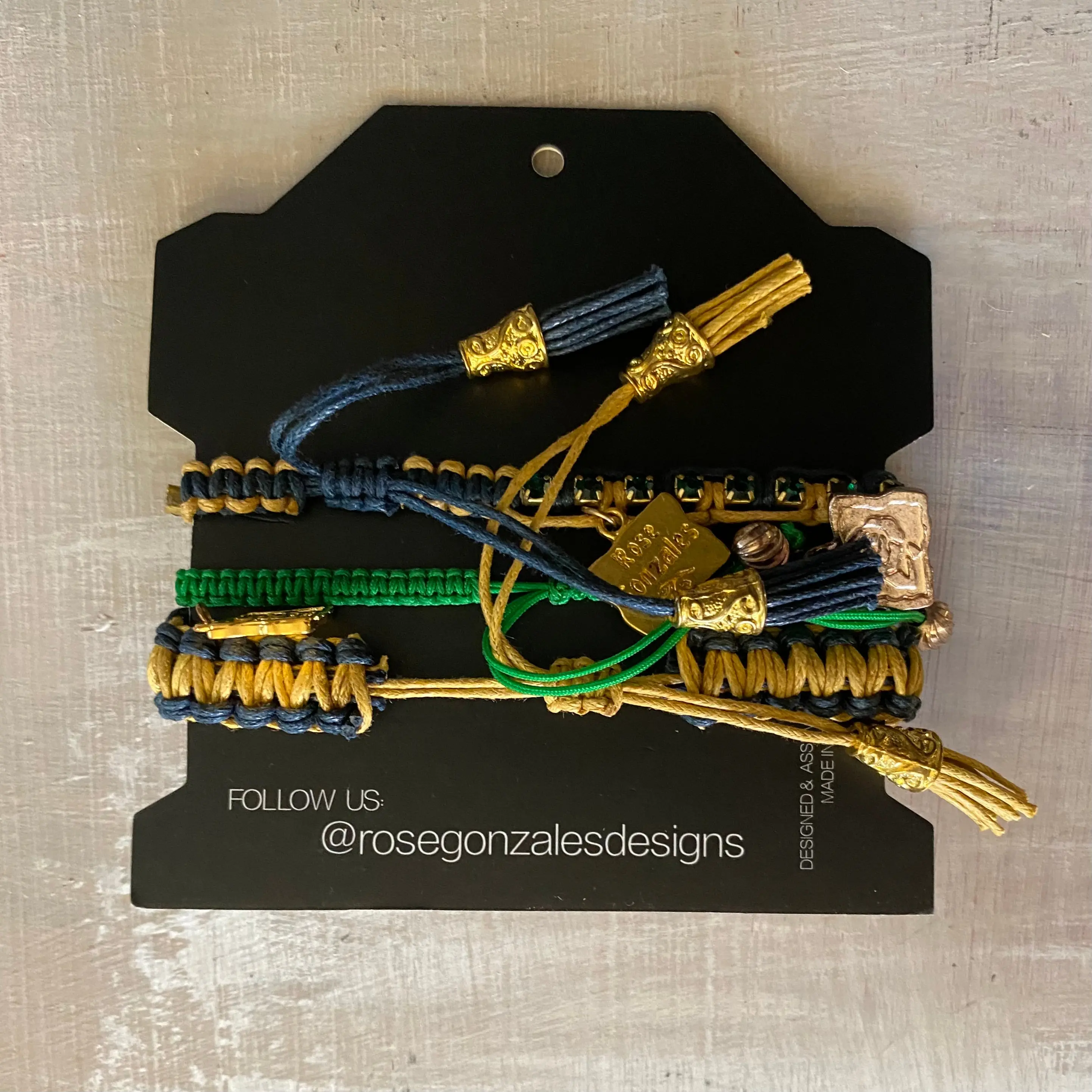 Game Day: Navy Blue, Old Gold & Green - Macrame String Bracelet Set