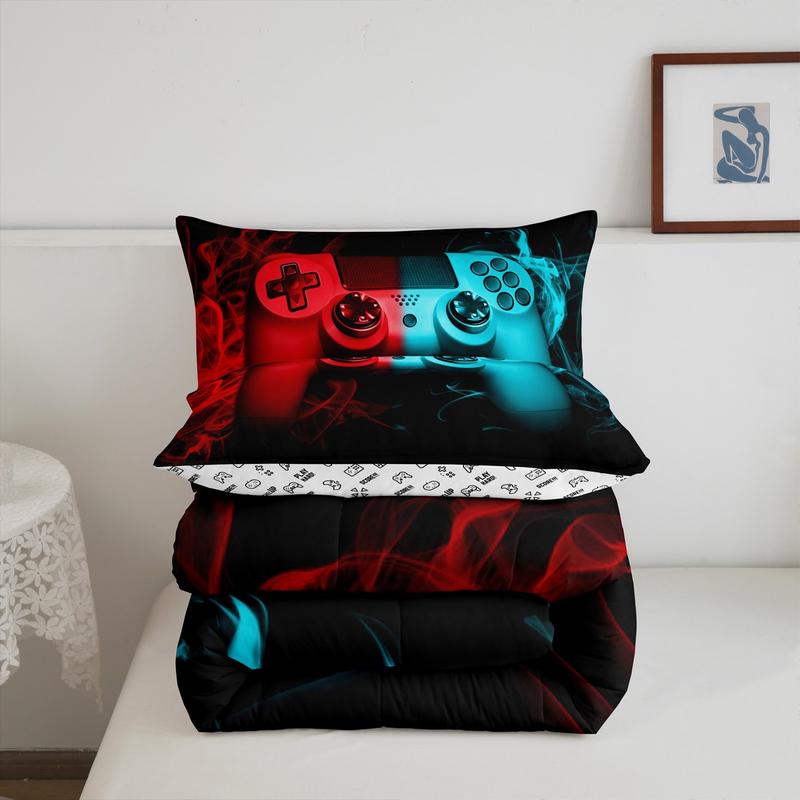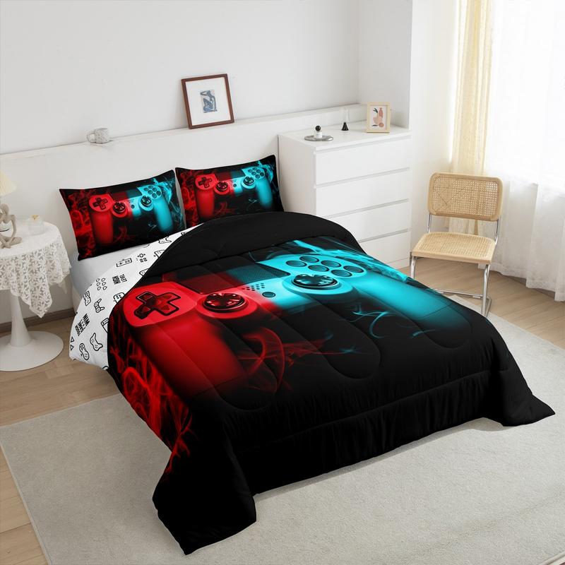 Black Red Gamer Bed Comforter Set,Gaming Comfortable Duvet,Super Soft Designer Bedroom Home Decor Quilt Set,Microfiber All Season Luxury Bedding Set