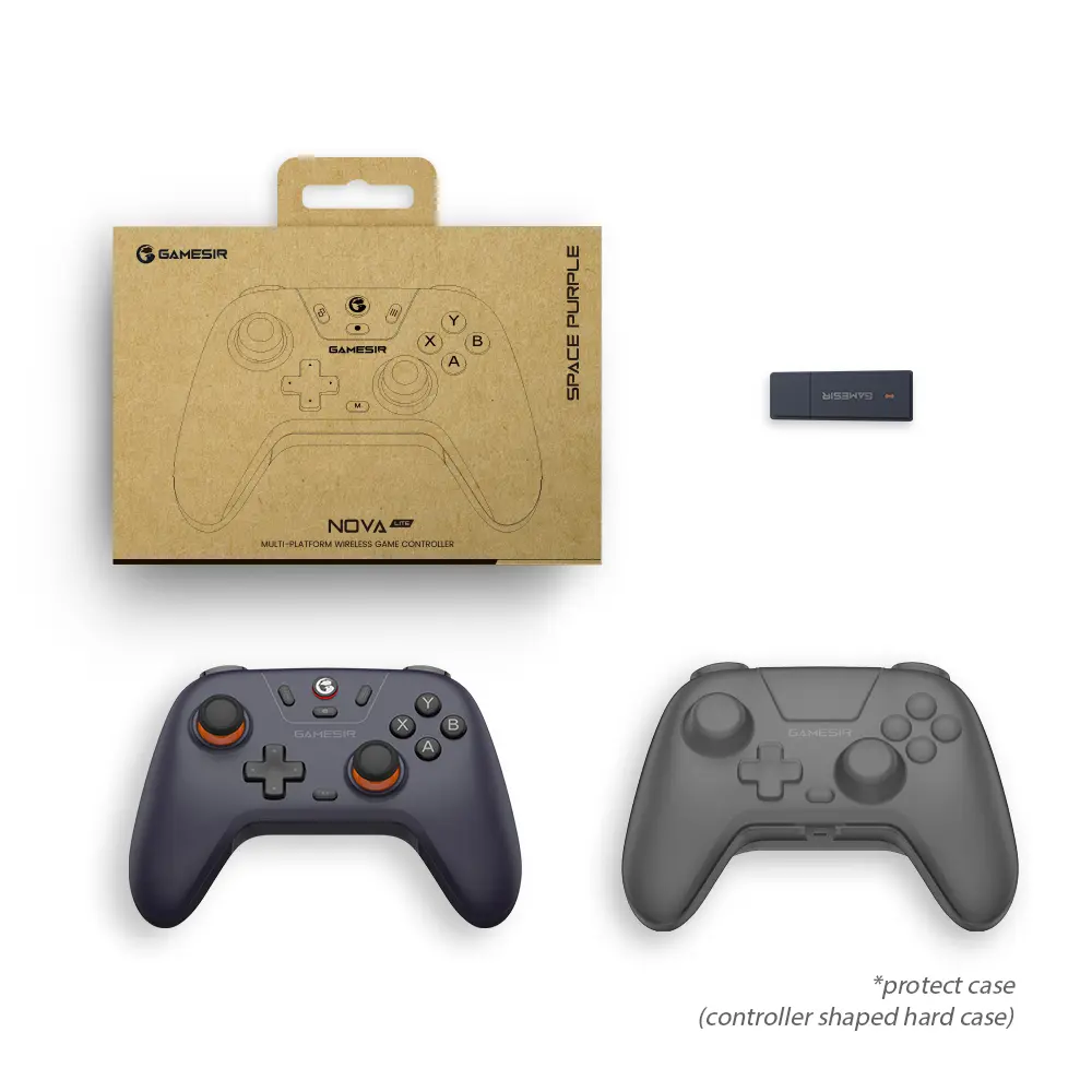 GameSir Nova Lite equips Hall Effect sticks, ensuring a long lifespan of the controller, say goodbye to stick drift. Featuring analog triggers, 20Hz Turbo function, and 2 motor in the grips, Nova Lite commits to cater to gamers’ requirements with an super-affordable price, and you also have the option to choose between two colorways: Space Purple or Stellar White.