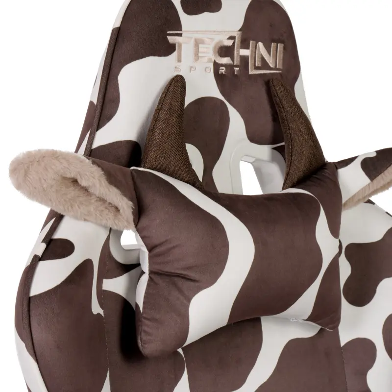 ·Cow Headrest: Features a cow headrest with white ears and brown horns.