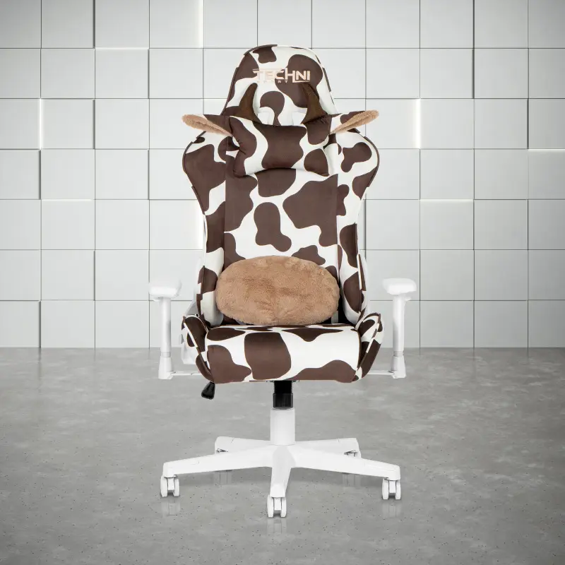 🎮 Upgrade your gaming setup with the [Bellemave]Techni Sport TS85 Brown COW Series Gaming Chair. This chair combines comfort, style, and performance, making it an ideal choice for gamers. The chair features a brown and white cow print velvet-like fabric, providing a stylish and comfortable seating experience.