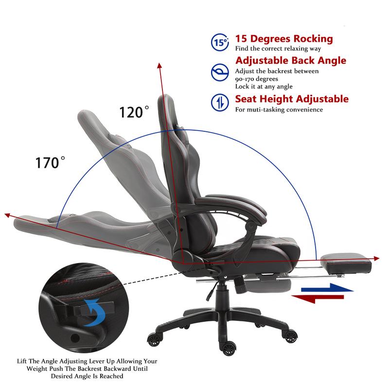 【EVERYTHING YOU NEED FOR A CHAIR】: High level mobility supported by a 360-degree swivel and ultra-smooth caster wheels; 90°-165° reclining for working, gaming, reading or napping; 20° controllable rocking and retractable footrest for relaxing; Up to 350 lbs capacity, adjustable seat height, highly flexible head pillow and lumbar support.