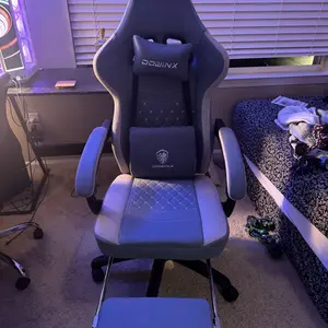 Amazing chair I love the way it looks in my room a incredible addition to my gaming setup from the recliner and the soft cushion and massage lumbar support pillow this gaming chair does it all I’m glad I came across it