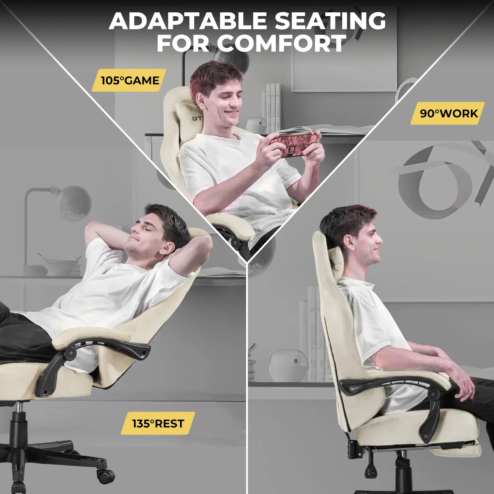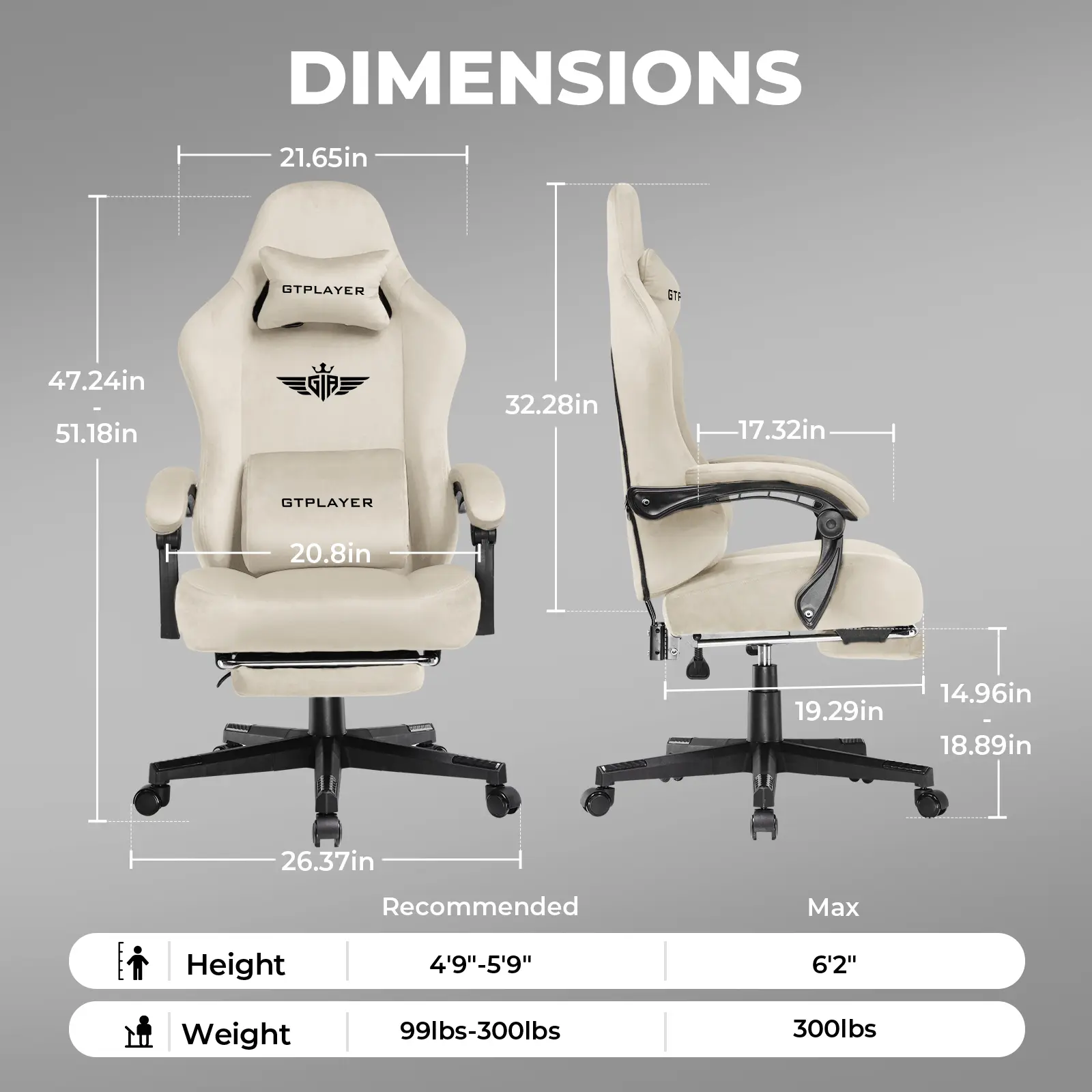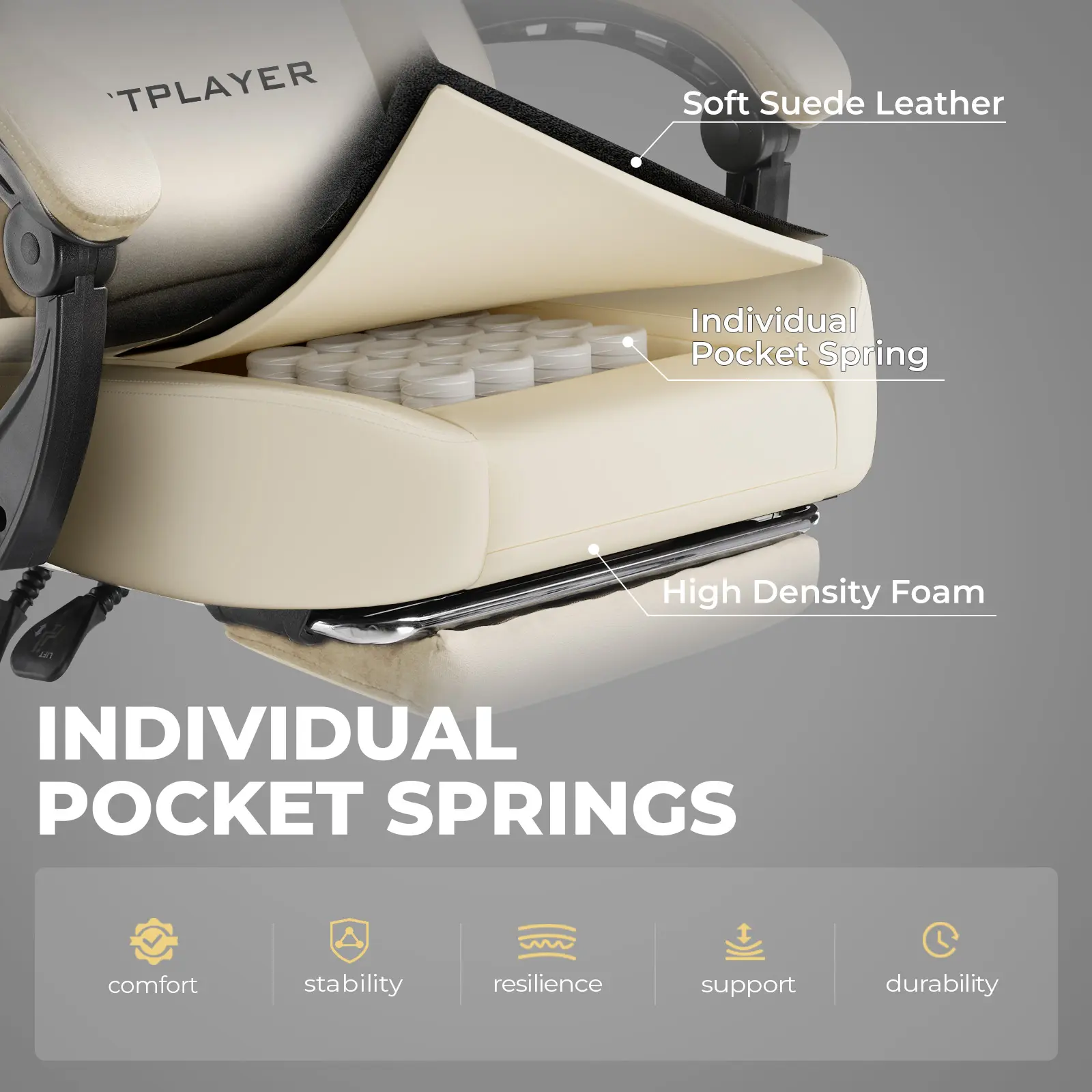 ·ăIndependent Integrated Spring Paddingă: GTPLAYER gaming chair is equipped with high-quality integrated spring padding that provides optimal comfort and support while gaming and working. This advanced seating technology provides dynamic support and adjusts to your position to ensure long-lasting comfort and reduce fatigue during long gaming sessions.