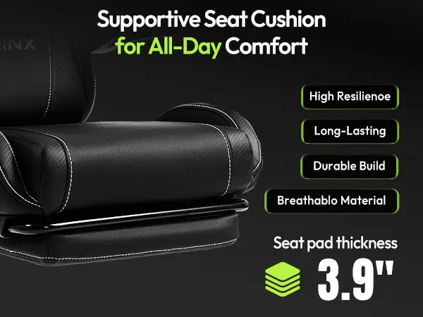·Advanced Spring Cushion Technology: Dowinx gaming chair's advanced pocket spring cushion enhances your gaming experience. Designed to offer the luxurious comfort of a sofa, it smartly adapts to your body's movements, providing targeted support. This feature ensures long-term resilience for daily use, extending your gaming sessions with ease.