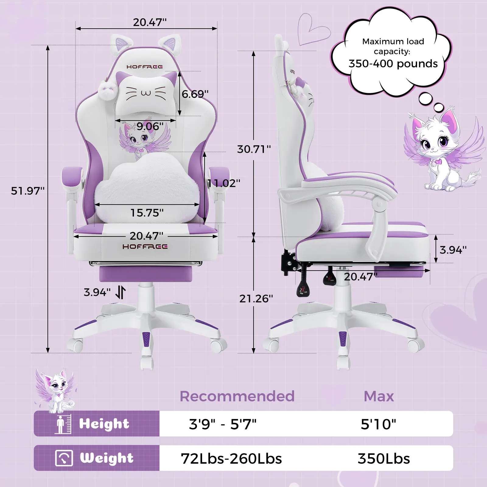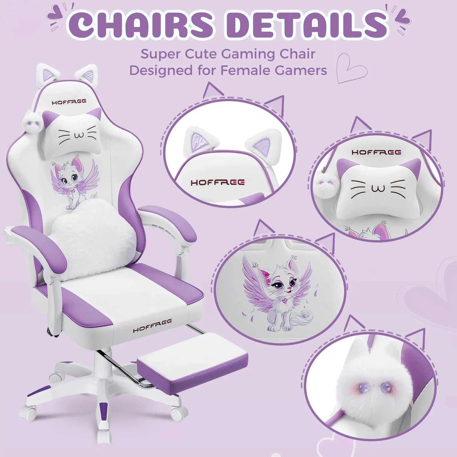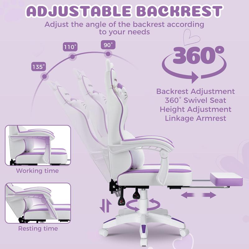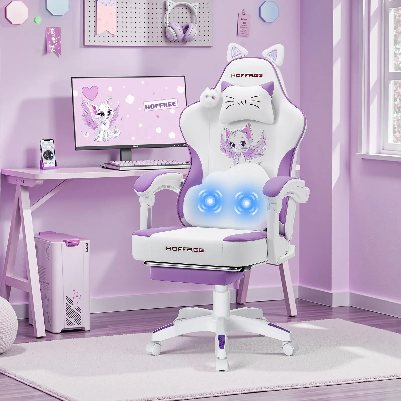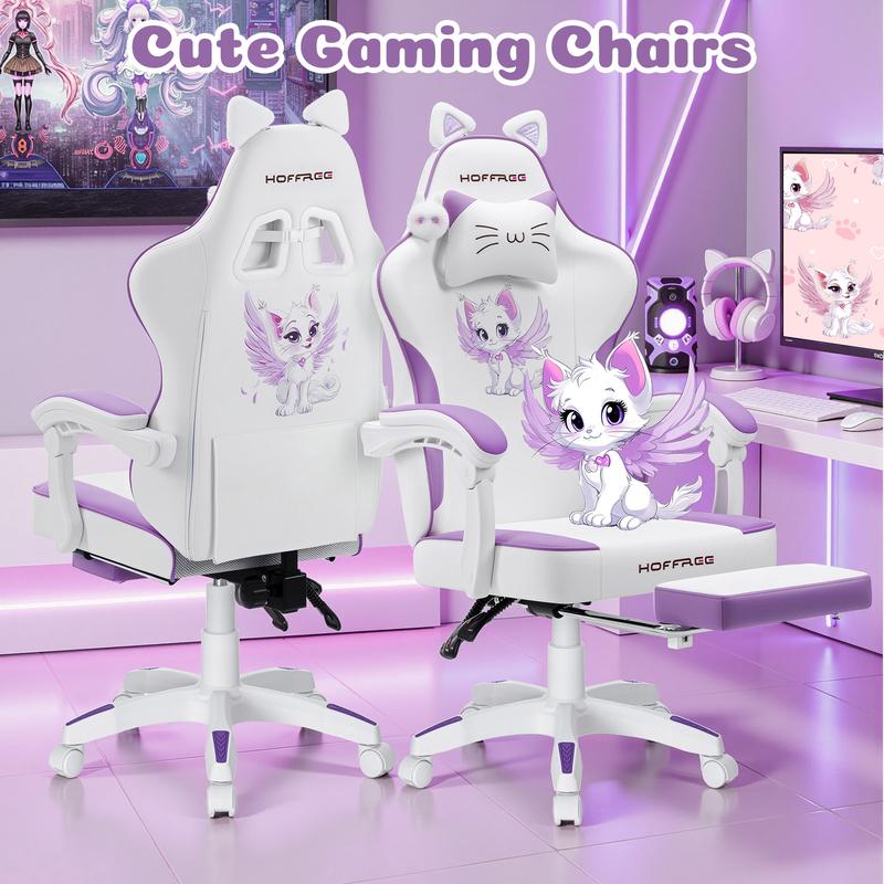 🎮 HOFFREE Gaming Chair for Girls with Cat Ears & Massage Support