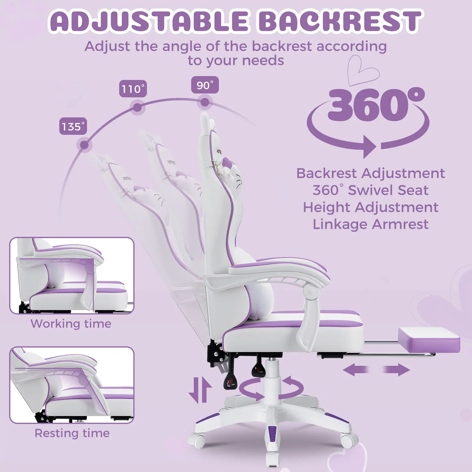 ·Adjustable 90°–135° recline for gaming, working, or napping.
