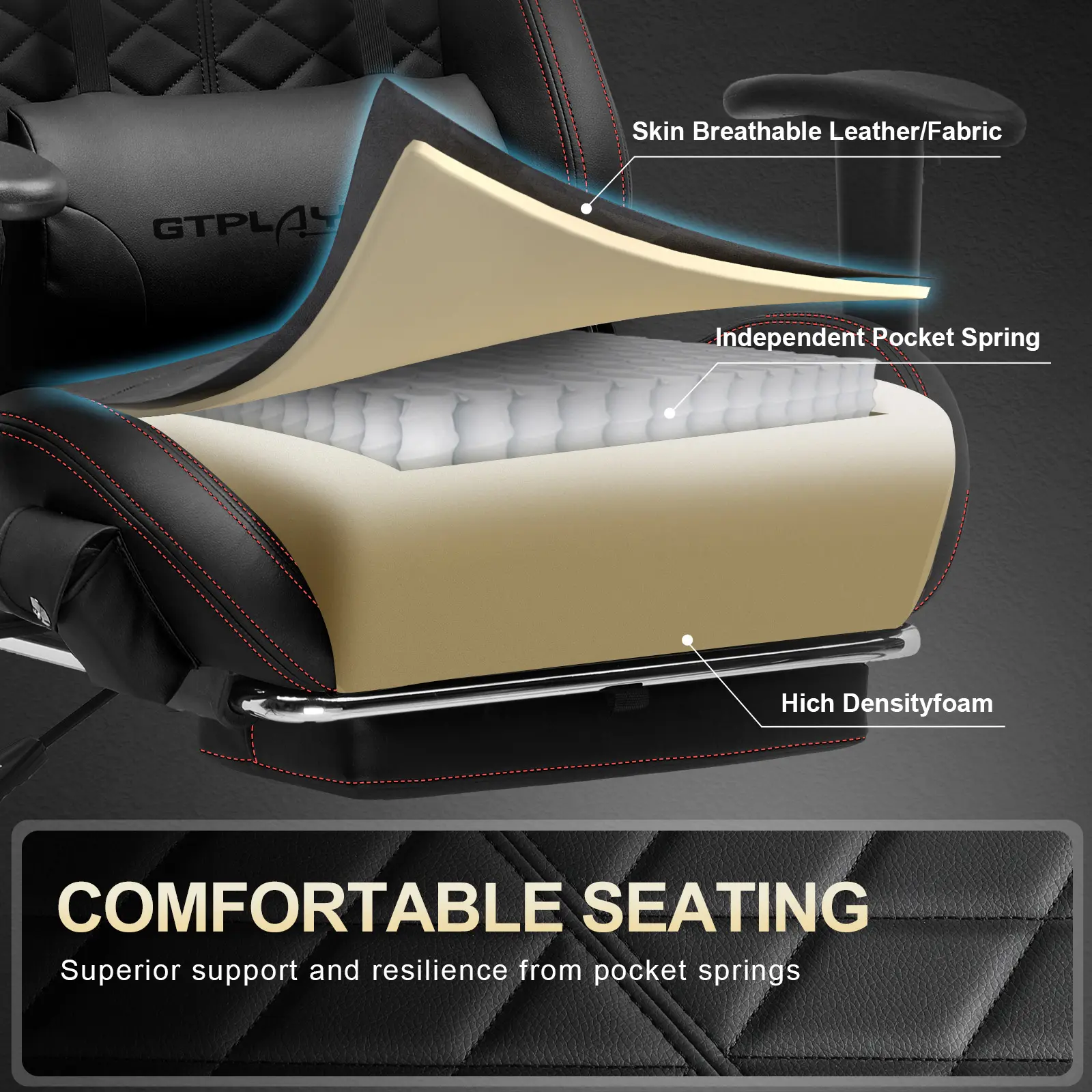 Super fast shipping, I’m impressed with the synthetic leather stitching quality like a realistic racing car seat. Solid built and only took about 25 minutes to assemble.