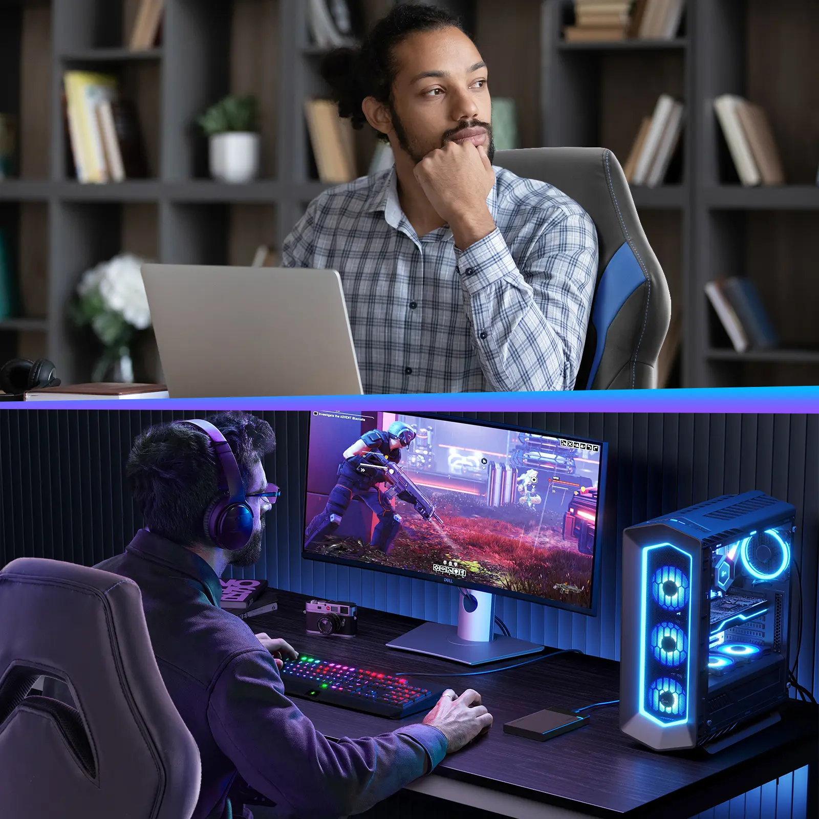 Featuring a distinctive design with multi-line elements and a hollowed-out back, this big and tall gaming chair is crafted from breathable PU leather. The thick, slightly concave cushion is ergonomically designed to support the hips' natural curvature. The two-color combination design enhances the visual appeal and ambiance while providing relaxed seating for extended gaming or work sessions.